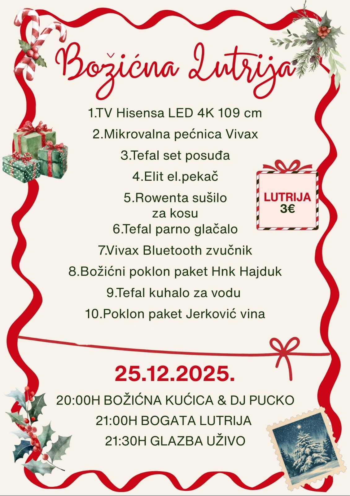 Program se nastavlja i 26. prosinca, kada od 20 sati posjetitelje ponovno očekuju Božićna kućica i DJ Pucko.