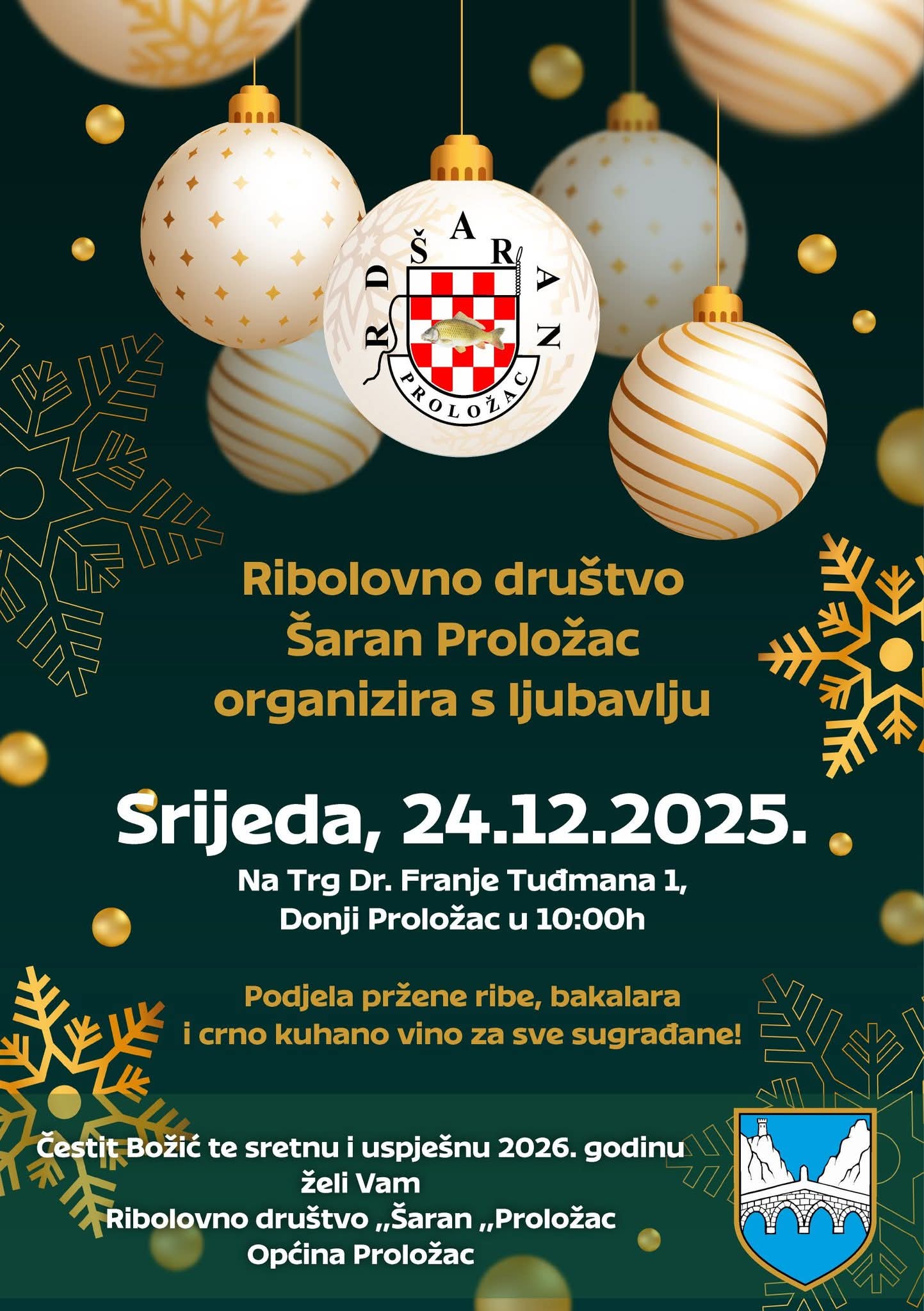 Ribolovno društvo „Šaran Proložac” i Općina Proložac u blagdanskom duhu organiziraju druženje za sve mještane i posjetitelje.