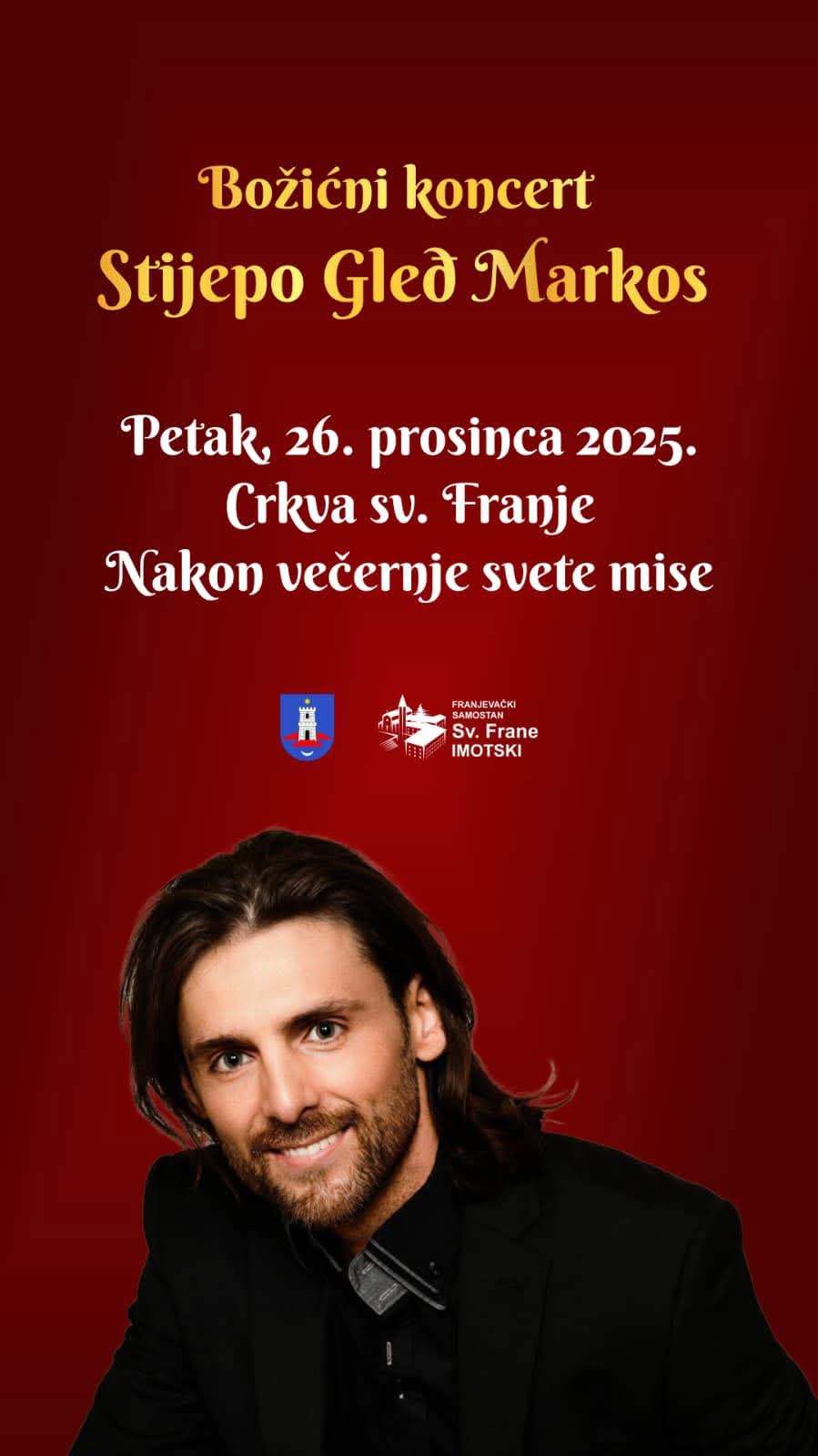 U petak 26. prosinca na blagdan sv. Stjepana, koncert će nakon večernje svete mise u crkvi sv. Franje u Imotskom održati Stijepo Gleđ Markos.