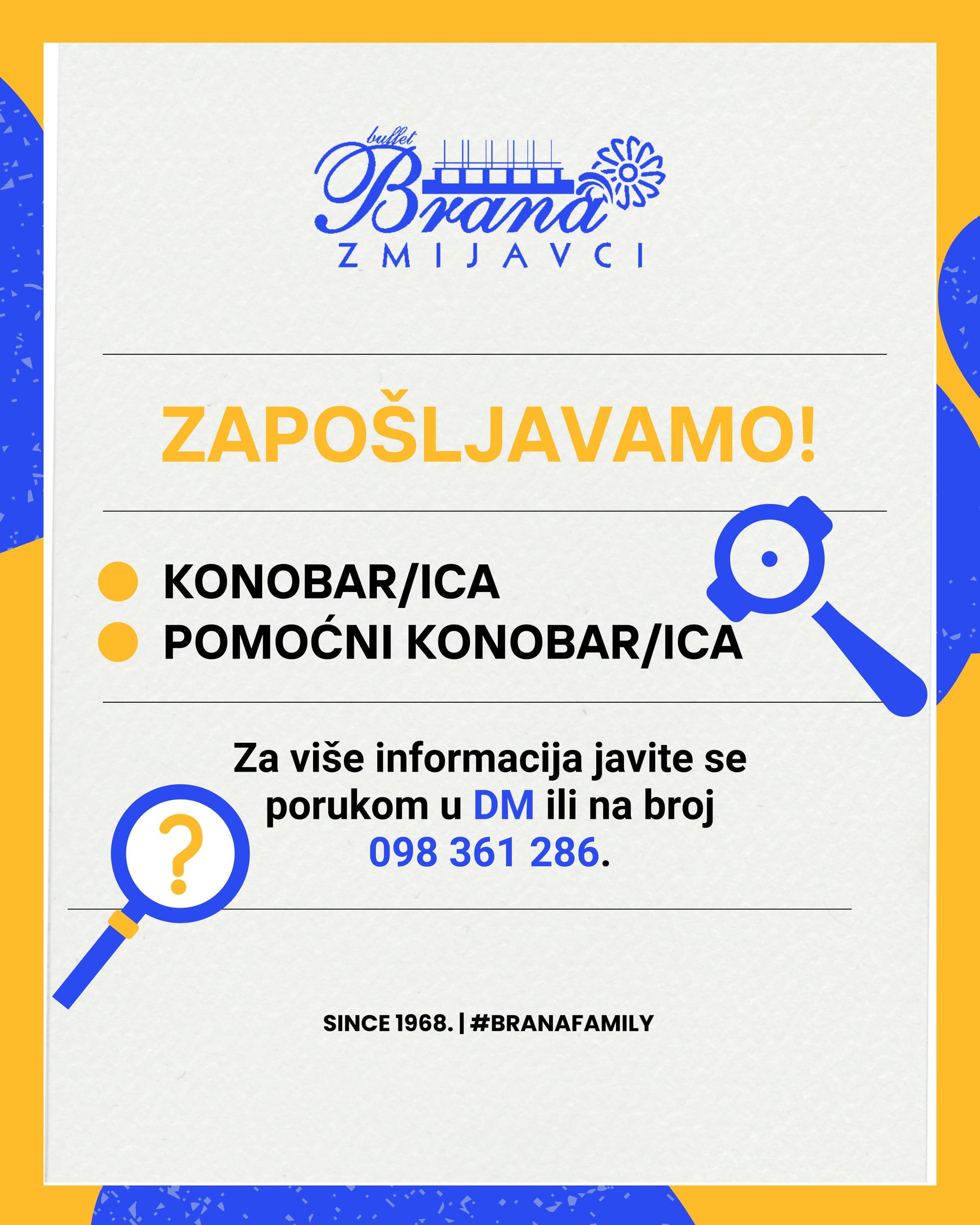 Ako tražiš stabilan posao u ugodnom i uhodanom okruženju, ovo je prilika da postaneš dio #BranaFamily.