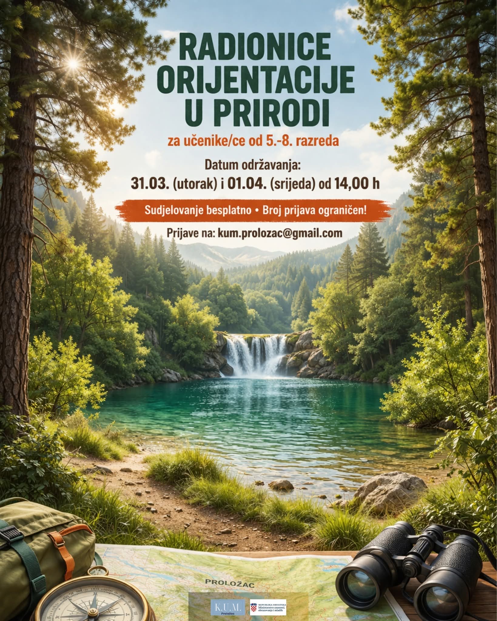 Udruga KUM Proložac organizira besplatne radionice orijentacije u prirodi namijenjene učenicima od 5. do 8. razreda, u sklopu projekta „RUN – Rastemo, učimo, napredujemo!“, koji podržava Ministarstvo znanosti, obrazovanja i mladih.