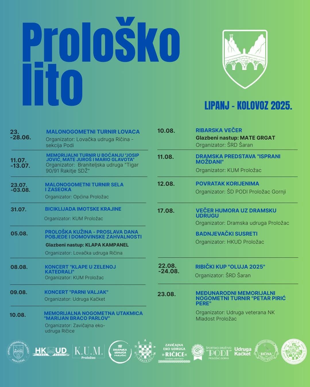 "Općina Proložac s ponosom provodi niz ljetnih manifestacija u partnerstvu s vrijednim udrugama i mještanima koji neumorno rade na očuvanju naše kulture, običaja i zajedništva. Ove manifestacije nisu samo događaji, one su ogledalo naše zajednice, prilika da se susretnemo, veselimo i pokažemo koliko Proložac ima za ponuditi – od glazbe i sporta do umjetnosti i domaće tradicije. Zahvaljujemo svim udrugama, volonterima i pojedincima koji ulažu svoje vrijeme, znanje i srce. Vi ste nam najveće bogatstvo. Na vas se uvijek možemo osloniti. Pratite nas za raspored nadolazećih događanja – vidimo se ovo ljeto u Prološcu", poručuju iz Općine Proložac.