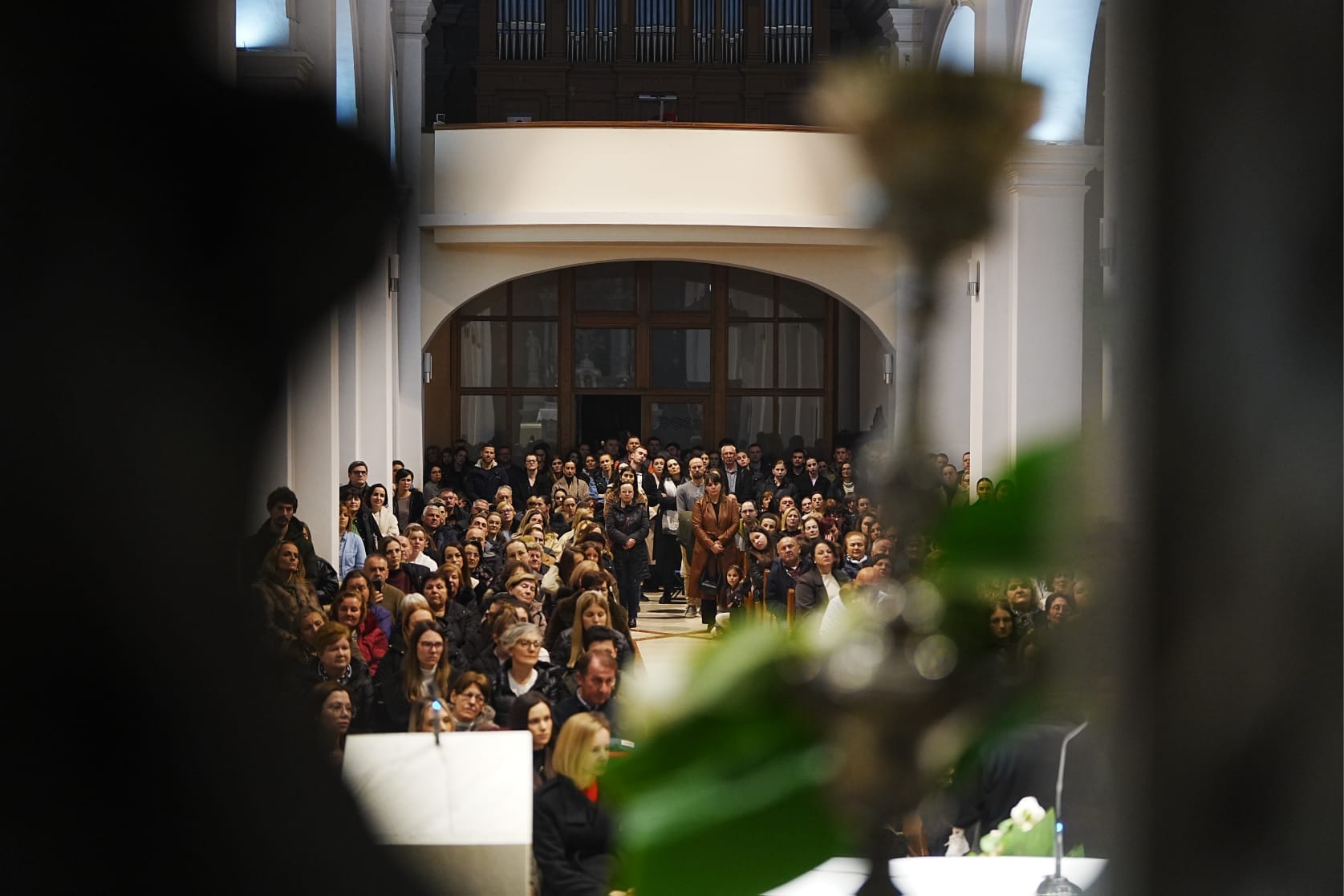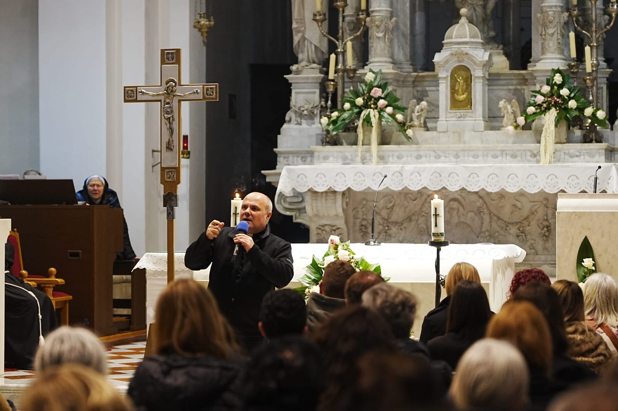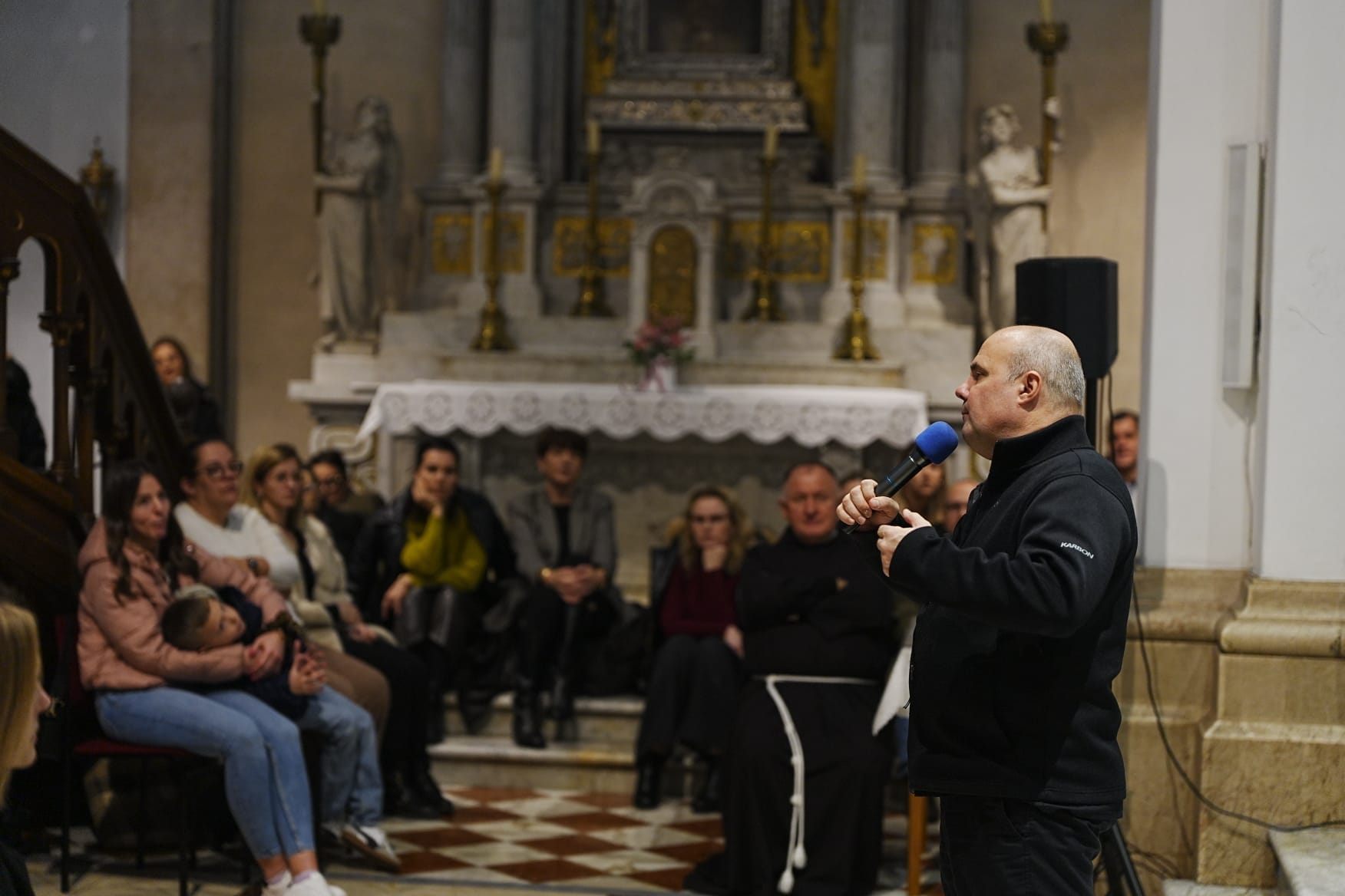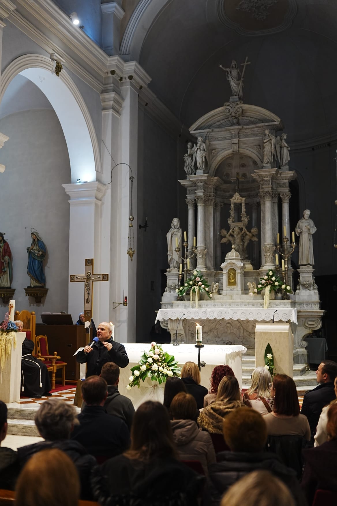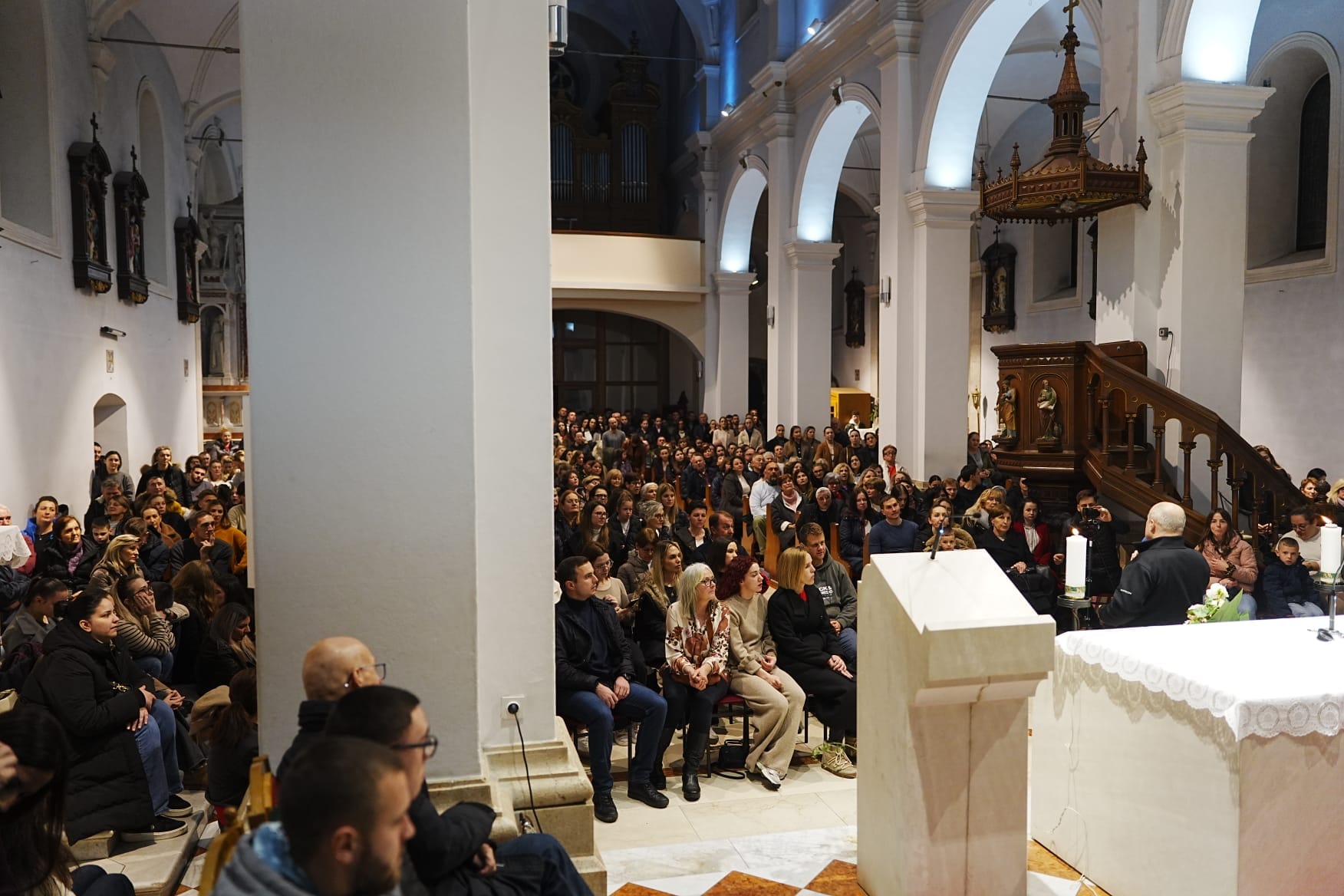Susret s don Damirom Stojićem započeo je svetom misom u 18 sati u imotskoj crkvi, koja je bila ispunjena do posljednjeg mjesta. Osim vjernika u crkvi, mnoštvo ljudi pratilo je misu i u prostorijama pokraj crkve, kao i izvan nje, što je već na samom početku dalo naslutiti koliko je ovaj susret bio iščekivan. Svetu misu predvodio je don Damir, koji je nakon euharistijskog slavlja nastavio s predavanjem na temu teologije tijela, jedne od najdubljih i najljepših kateheza Crkve o čovjeku, njegovu tijelu, dostojanstvu i pozivu na ljubav. Kao snažan uvod u predavanje, don Damir je ispričao svjedočanstvo obraćenog muslimana, koji je, kako sam kaže, sasvim slučajno završio na svetoj misi. Nije razumio jezik, nije znao što se događa, ali je u trenutku pričesti, slijedeći sve sudionike oko sebe, pošao za njima i primio hostiju. Upravo u tom trenutku, kroz Tijelo Kristovo, doživio je duboko i neizrecivo iskustvo živoga Boga, koje ga je potaknulo na put obraćenja i želju da postane kršćaninom. U „samo jednom“ Tijelu Kristovu, taj je čovjek iskusio Boga koji ljubi, zove i spašava. To svjedočanstvo svima prisutnima bilo je snažan poticaj da se zapitamo koliko smo često nesvjesni veličine dara euharistije i koga zapravo primamo u svoje tijelo tijekom svete pričesti. Iz tog je uvoda don Damir poveo slušatelje prema središnjoj poruci teologije tijela: tijelo nije nevažno, nije sporedno i nije slučajno. Bog nas nije stvorio kao duhove bez tijela, nego kao cjelovite osobe – duh, dušu i tijelo. Nismo slučajno u tijelu. „Bog stvori čovjeka – muškarca i ženu; dvoje, a jedno“, podsjetio je don Damir, povezujući otajstvo ljudskog tijela s otajstvom Presvetog Trojstva. Riječ tijelom postade – Bog ulazi u ljudsku povijest upravo kroz tijelo. Na slikovit i dojmljiv način, volonteri su tijekom predavanja prikazali povezanost braka i Presvetog Trojstva, ističući da su muškarac i žena zajedno pozvani biti slika i preslika Boga koji je zajedništvo, ljubav i darivanje. Kroz bračni par tj. sakrament koji je vidljivi znak vidjeli smo ono nevidljivo, Presveto Trojstvo. Teologija tijela, čiji je autor Karol Wojtyła, papa Ivan Pavao II., obuhvaća 129 kateheza i počiva na dva temeljna pitanja: prvo – tko je čovjek, i drugo – kako da živim, za što sam stvoren. Govoreći o prvom pitanju, don Damir je naglasio da je čovjek stvoren na sliku Božju, jedinstven, neponovljiv i neizmjerno vrijedan. Kao što ne postoje dvije iste pahuljice snijega, iako ih je stvoreno nezamislivo mnogo, tako ne postoje ni dva ista čovjeka. A ako je svaka pahuljica toliko jedinstvena i lijepa, koliko li je tek dragocjeniji svaki čovjek, koji je posljednje i najsavršenije Božje stvorenje, koji je preslika samoga Stvoritelja? Drugo pitanje (kako da živim) vodi prema pozivu na prihvaćanje vlastitog tijela, vlastite povijesti i vlastitog identiteta. Don Damir je istaknuo da se danas najviše iskrivljuje upravo slika spolnosti. Crkvu se često prikazuje kao instituciju koja nešto zabranjuje i ima negativan stav prema tijelu i spolnosti, dok je istina upravo suprotna. Crkva želi zaštititi svetost spolnosti, jer ona nije banalna niti svedena na puki užitak, nego je sveta. Bračni čin je svet i ogledalo je onoga što Bog jest – ljubav i život. Muškarac i žena su zajedno pozvani biti vidljiva slika Boga koji ljubi, stvara i daruje se. Pozvani smo gledati sebe i druge onakvima kakvima nas Bog vidi, a ne kroz svjetovne manjkavosti, rane, grijehe i pogreške. Bog vidi ljepotu, dostojanstvo i mogućnost novog početka. Nikada nije kasno započeti živjeti svetost tijela, jer smo za to stvoreni. Glavna poruka cijelog susreta, koju je don Damir više puta naglasio, može se sažeti u jednu rečenicu: „Gledajte se onako kako vas Bog gleda.“ U tom je duhu, nakon predavanja, nastavljeno i euharistijsko klanjanje, na istu nakanu, u i dalje prepunoj crkvi – kao tiha, ali snažna potvrda da glad za istinom, smislom i ljepotom čovjeka u Imotskom itekako postoji.