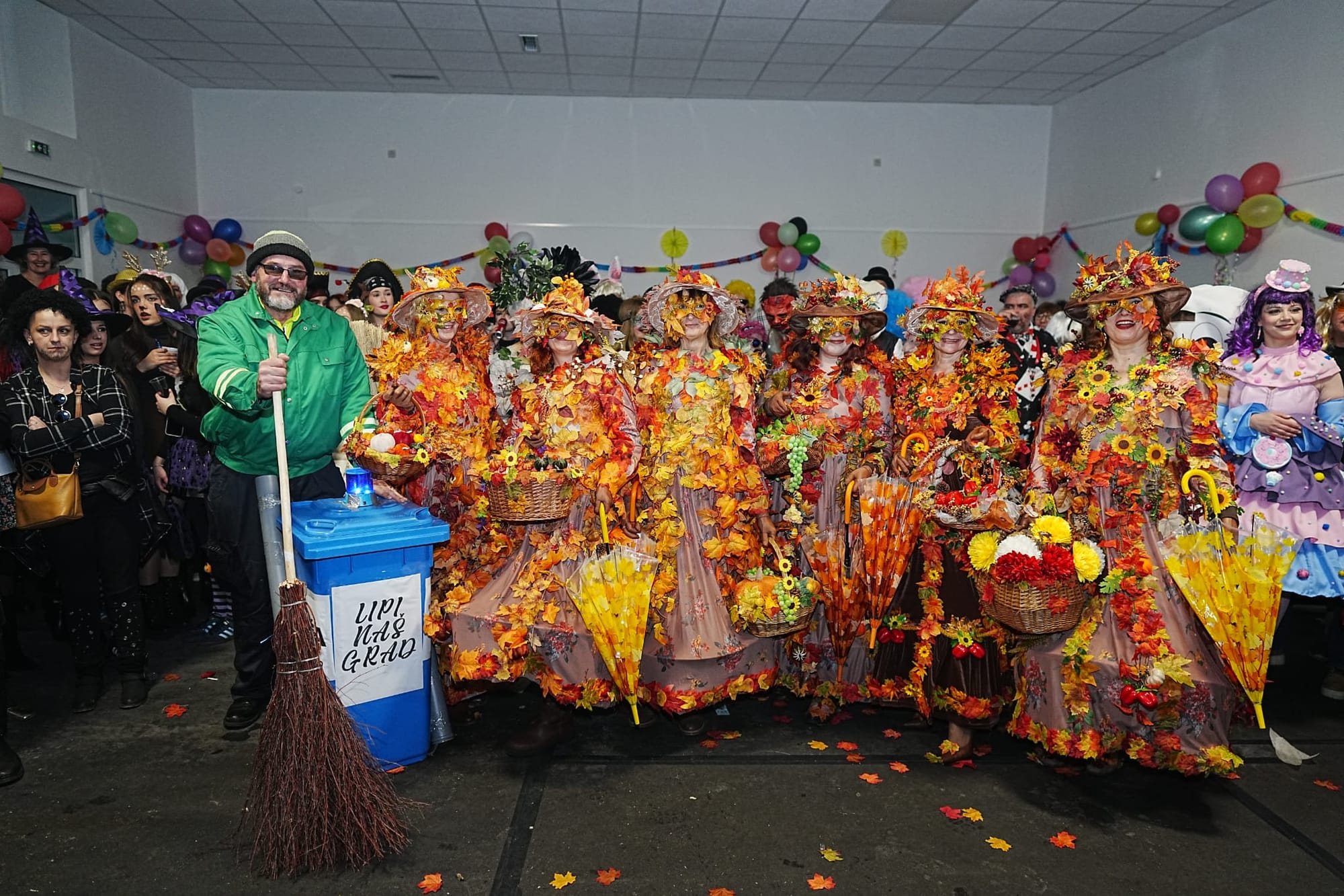 Na maskenbalu je sudjelovalo 11 skupnih maski, a među temama su se našli Cirkus u našem gradu, Jesen, Greta Thunberg, Sove, Anđeli, kao i brojne druge originalne i ručno rađene maske, uz pojedinačne likove poput Mister Beana i dikobraza. Program je pratio četveročlani žiri koji će najbolje maske proglasiti na Bakovoj povorci u nedjelju.