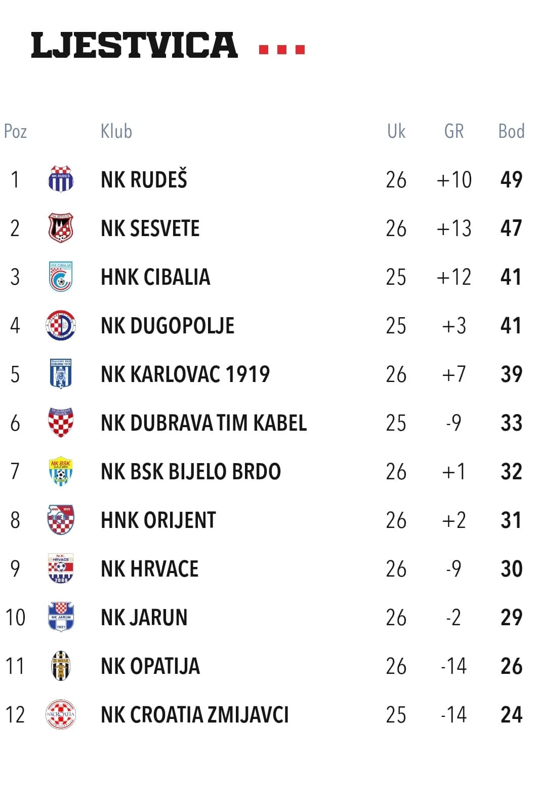 U susretu 15. kola Prve nogometne lige (1. NL), NK Croatia Zmijavci i NK Dugopolje odigrali su neriješeno 1:1, u utakmici koja bi mogla imati značajan utjecaj na rasplet u završnici prvenstva.