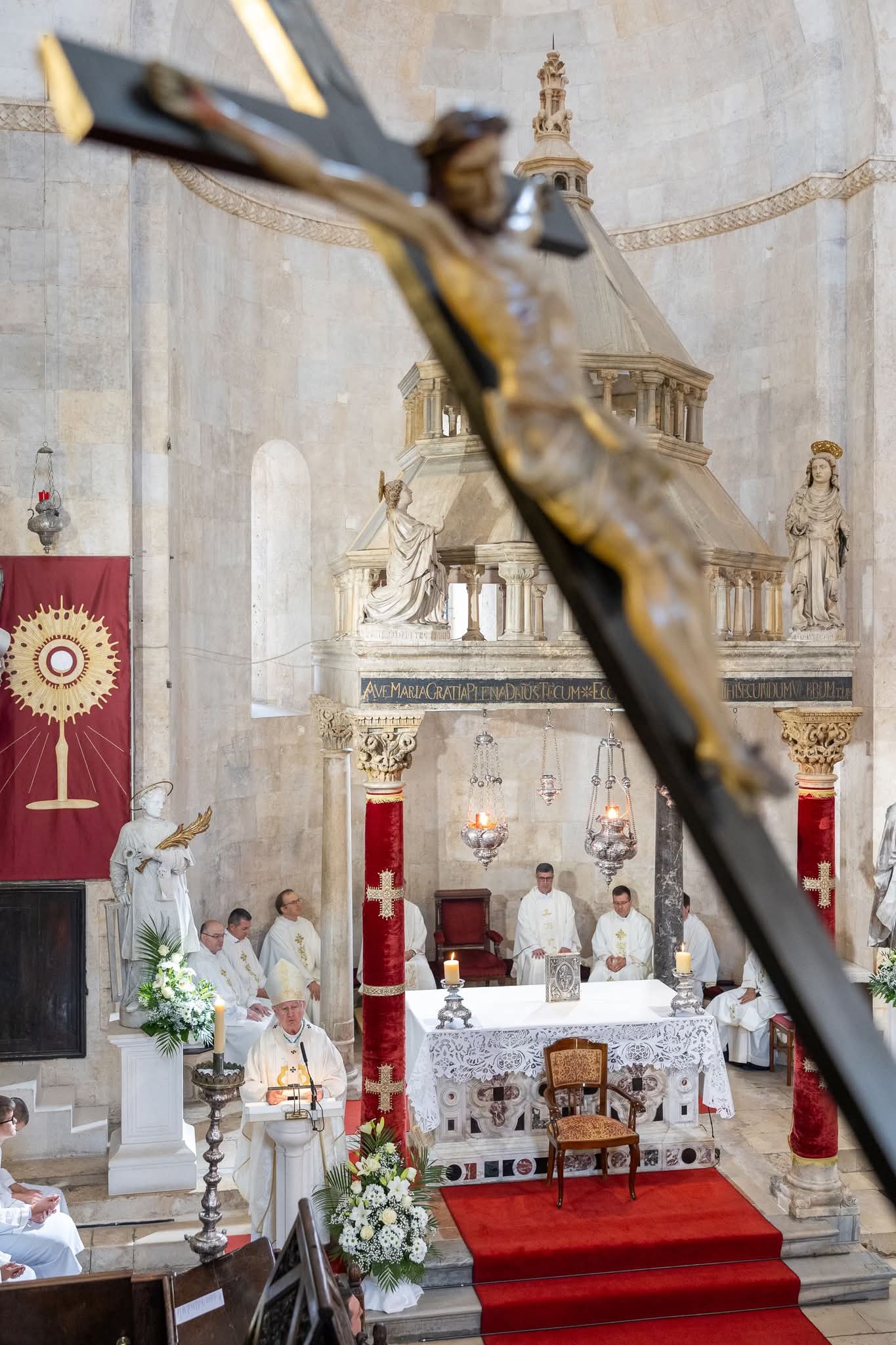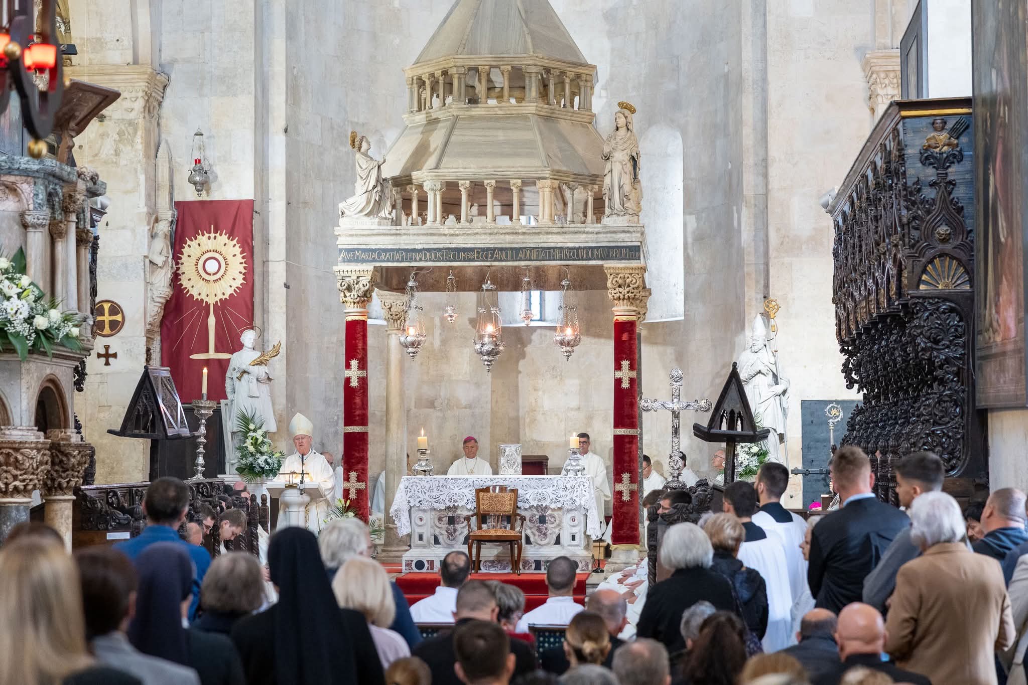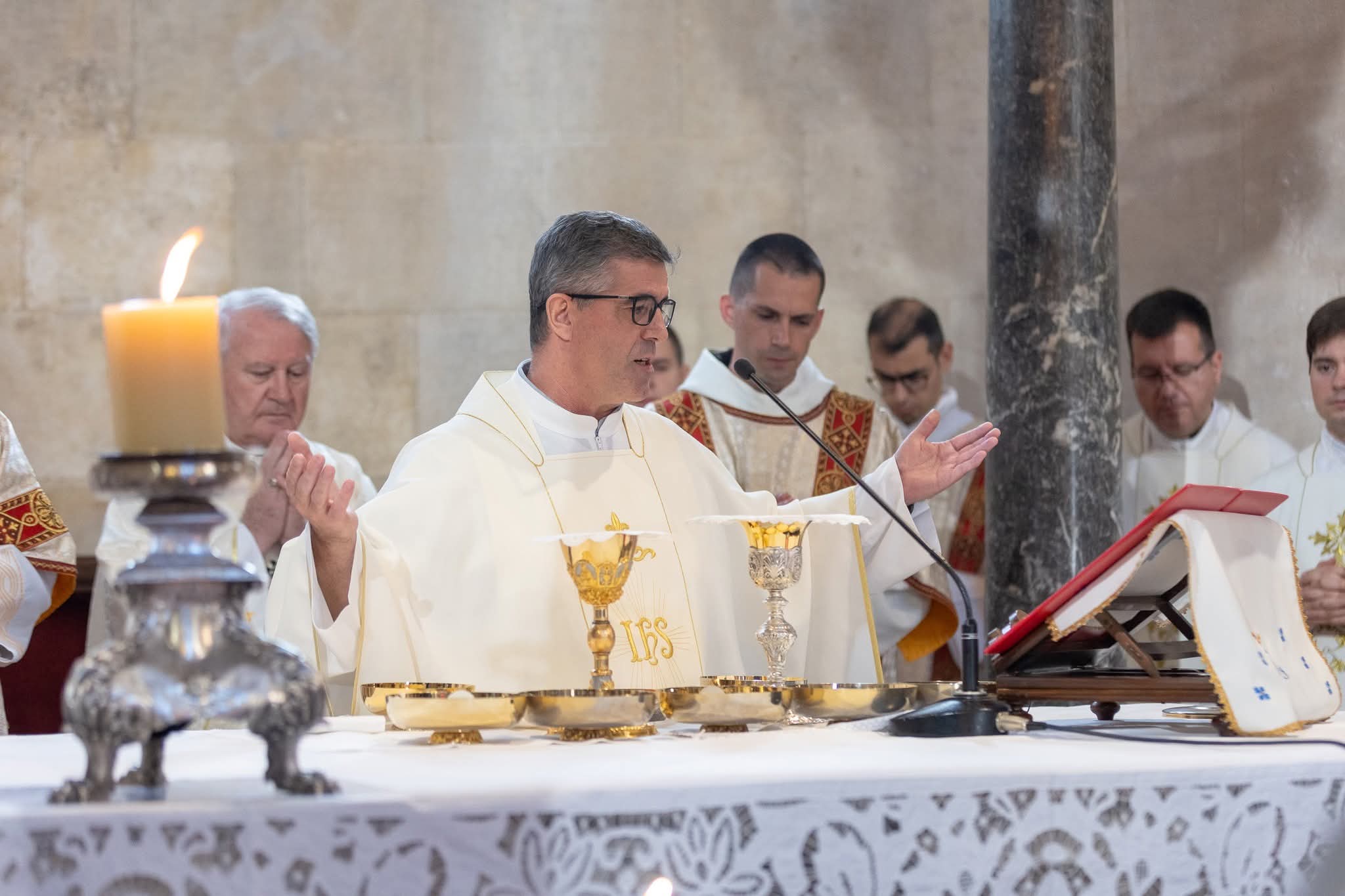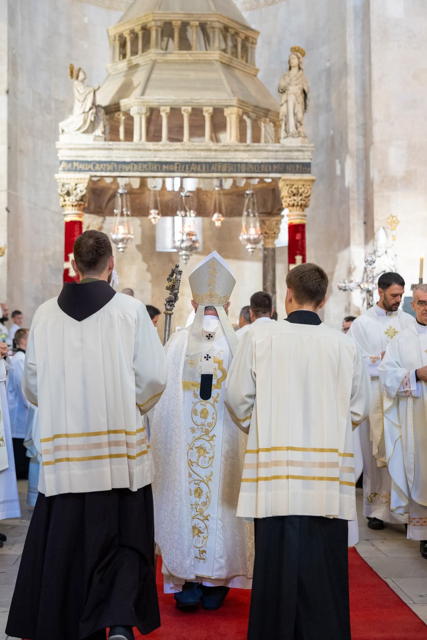 U koncelebraciji su bili nadbiskup u miru Marin Barišić, provincijal Franjevačke provincije Presvetog Otkupitelja fra Siniša Balajić, generalni vikar Splitsko-makarske nadbiskupije mons. Franjo Frankopan Velić, pastoralni vikar don Edvard Punda, odgojitelji bogoslova te još pedesetak svećenika. Liturgijsko pjevanje animirali su udruženi katedralni zborovi župe sv. Lovre pod ravnanjem Vinka Buble uz orguljašku pratnju Marina Ugrine.