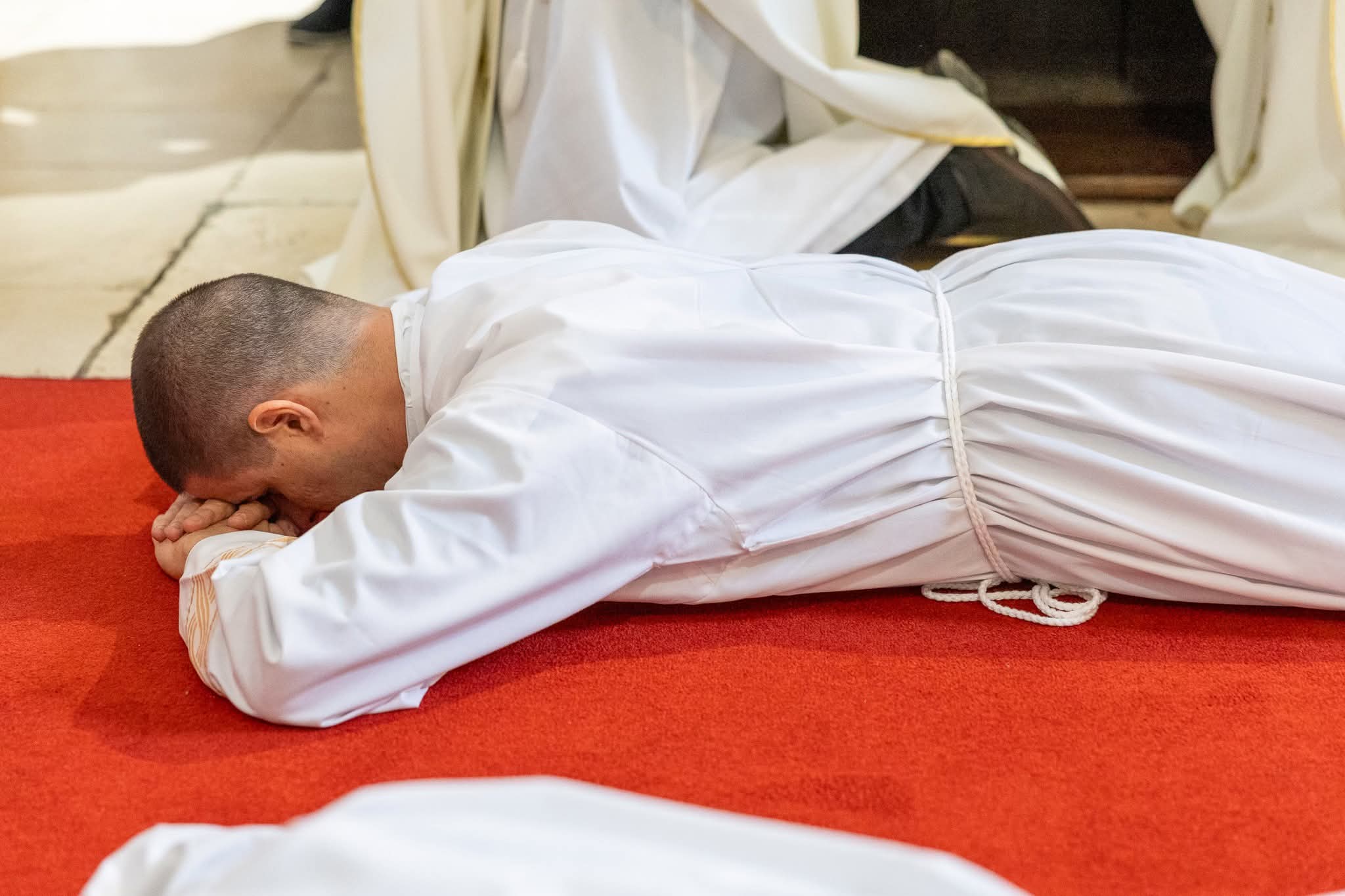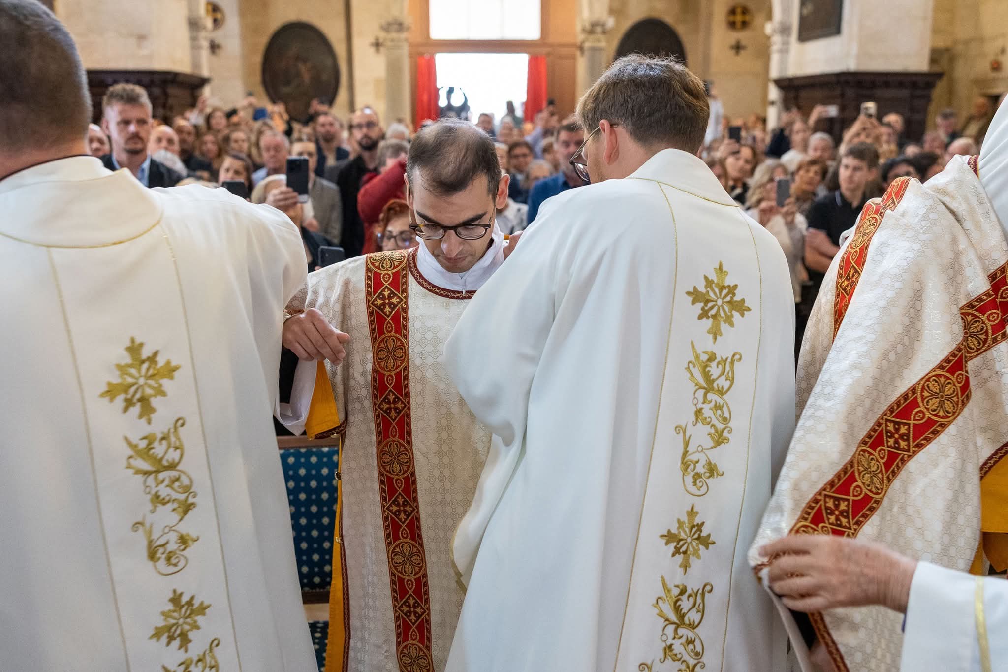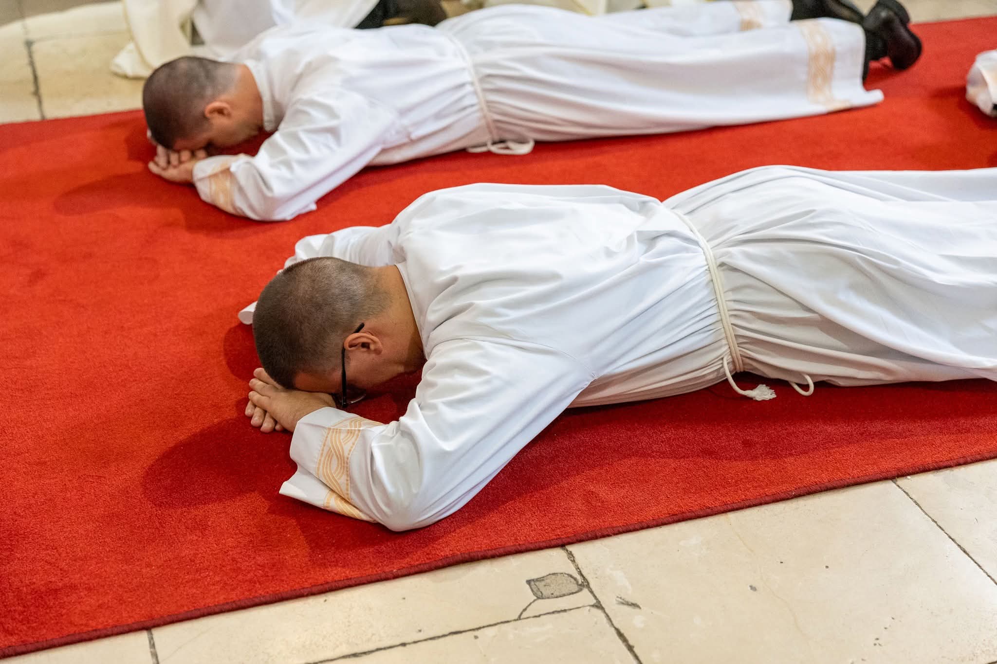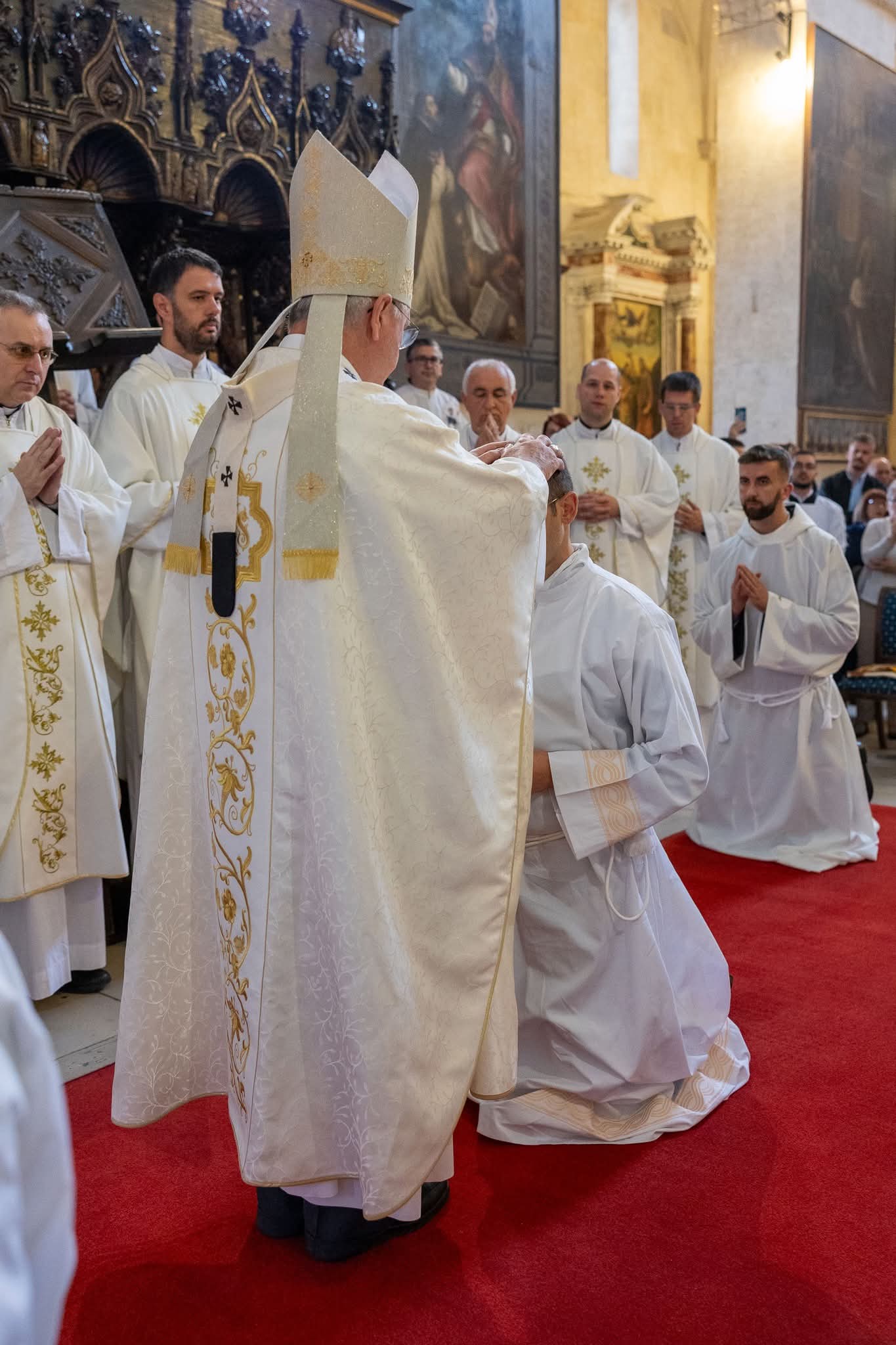 Nakon homilije nadbiskup je polaganjem ruku i posvetnom molitvom kandidatima podijelio sakrament svetoga reda đakonata. Potom su novozaređeni đakoni obukli službeno liturgijsko ruho – štolu preko lijevoga ramena i dalmatiku, znakove dostojanstva, radosti i pravednosti. Na kraju obreda primili su evanđelistar te izmijenili cjelov mira, nakon čega su pristupili služenju kod oltara.