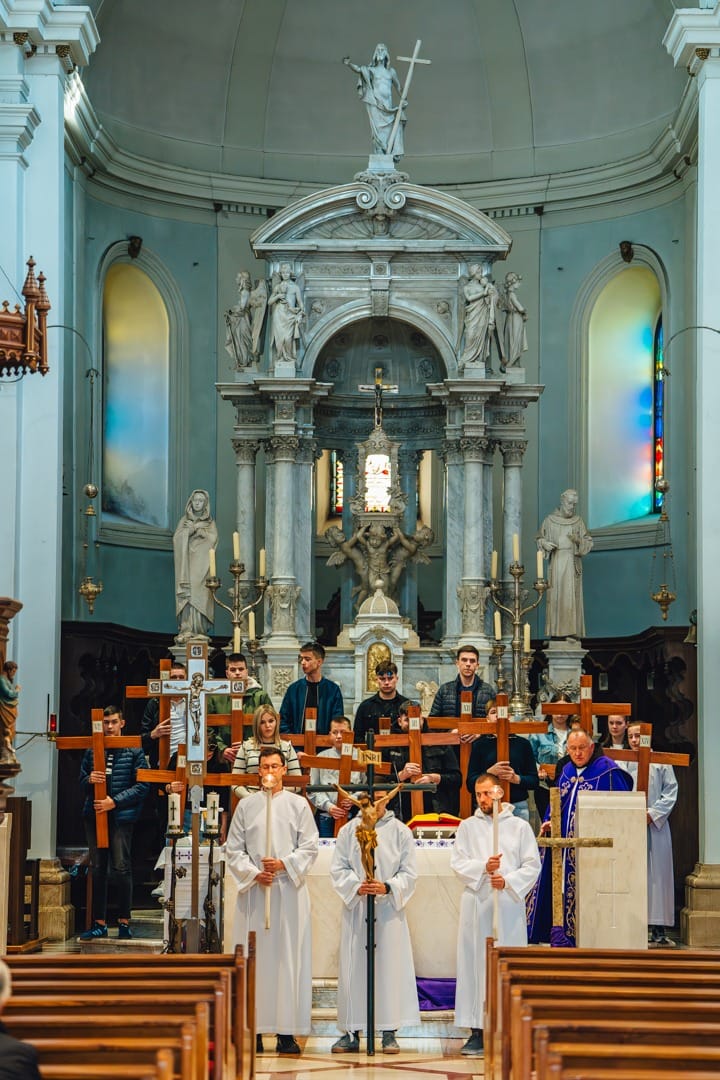 Pobožnost je započela u crkvi Crkva sv. Franje, odakle su sudionici nakon uvodne molitve krenuli u molitvenoj procesiji ulicama grada. Noseći križeve, mladi su u sabranosti prolazili postaje Križnog puta.