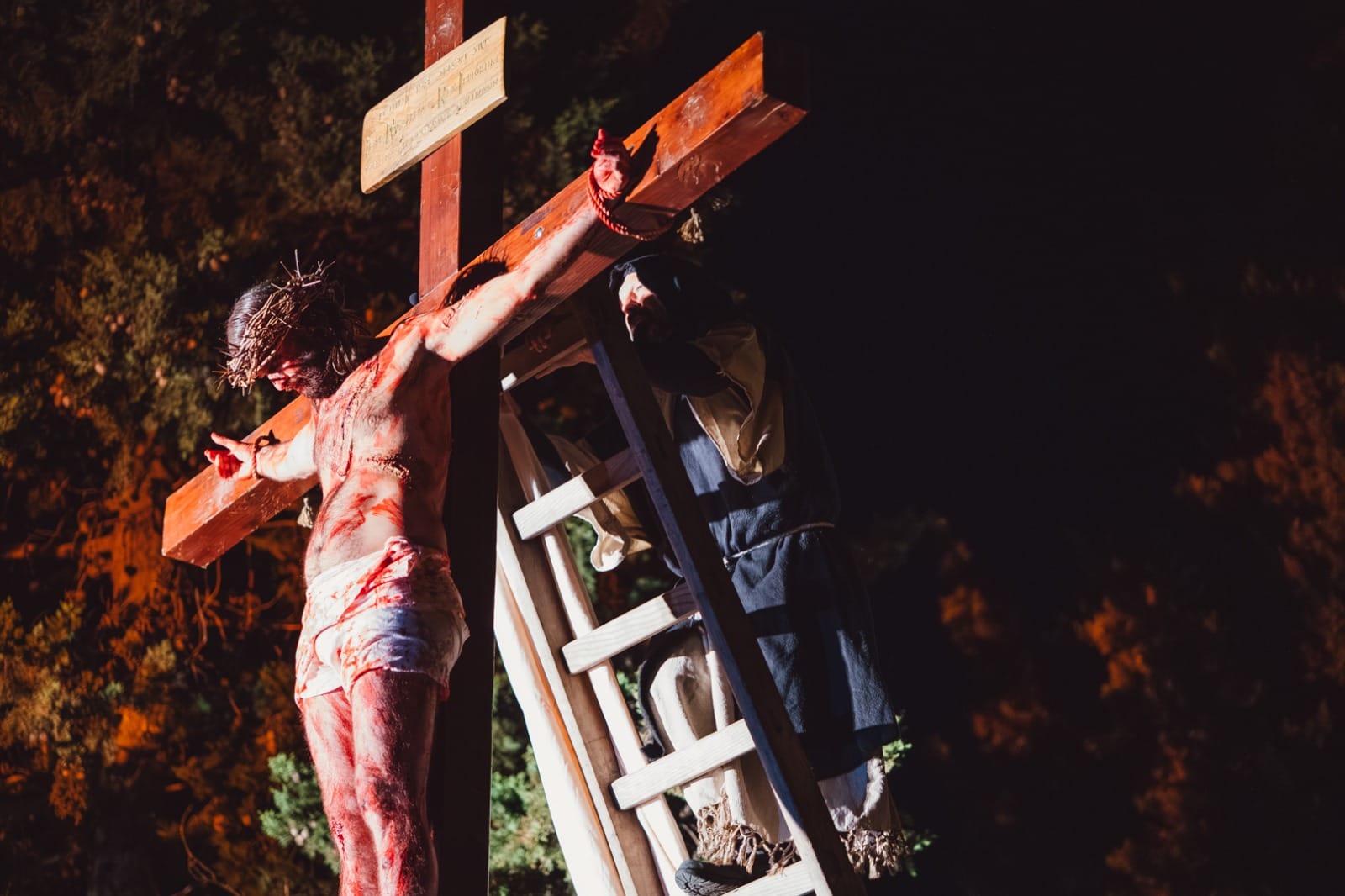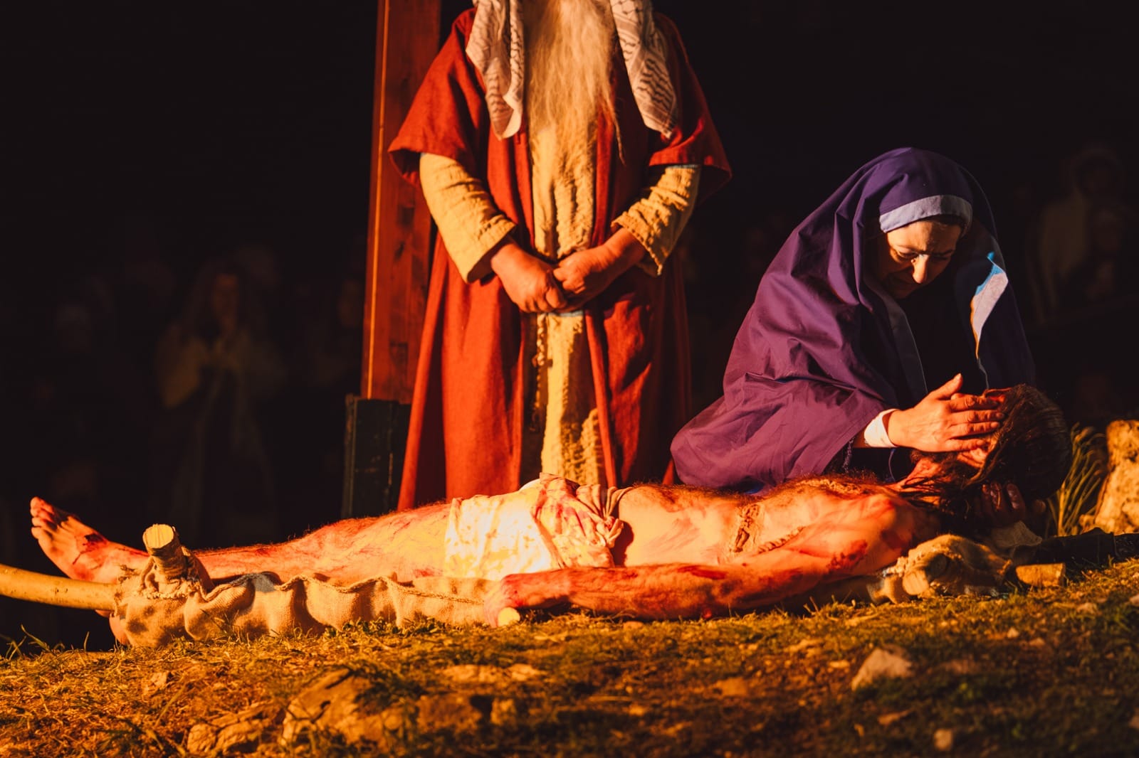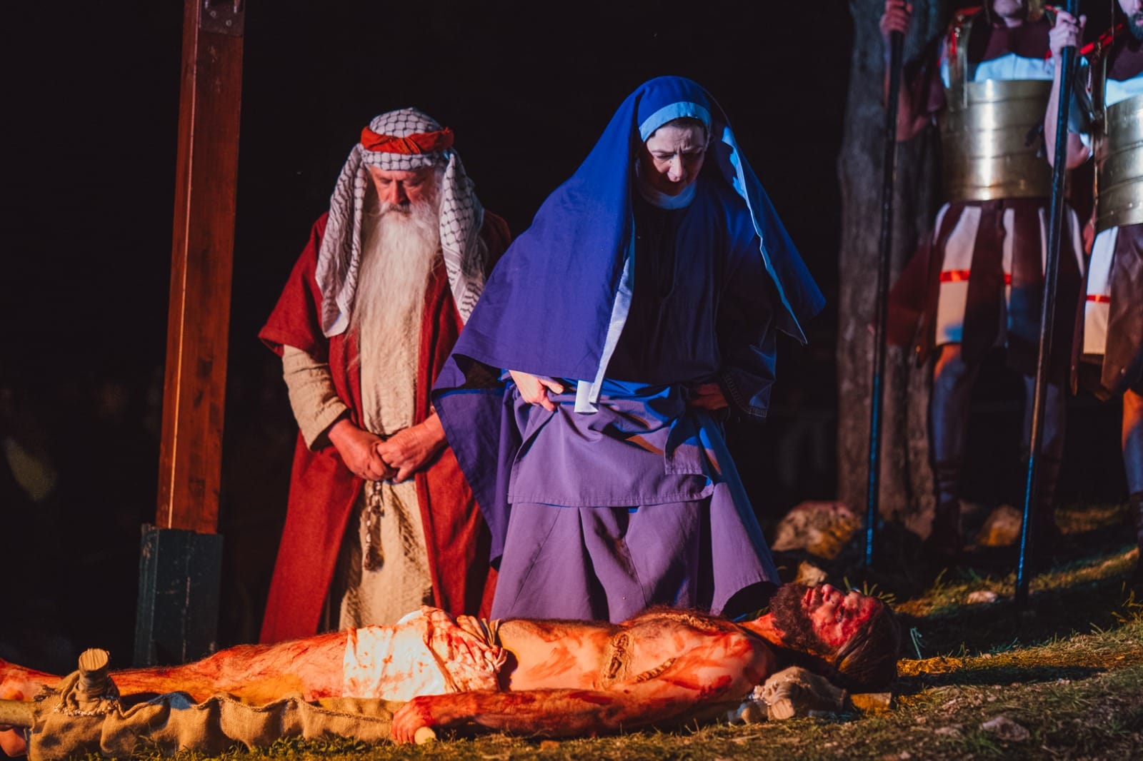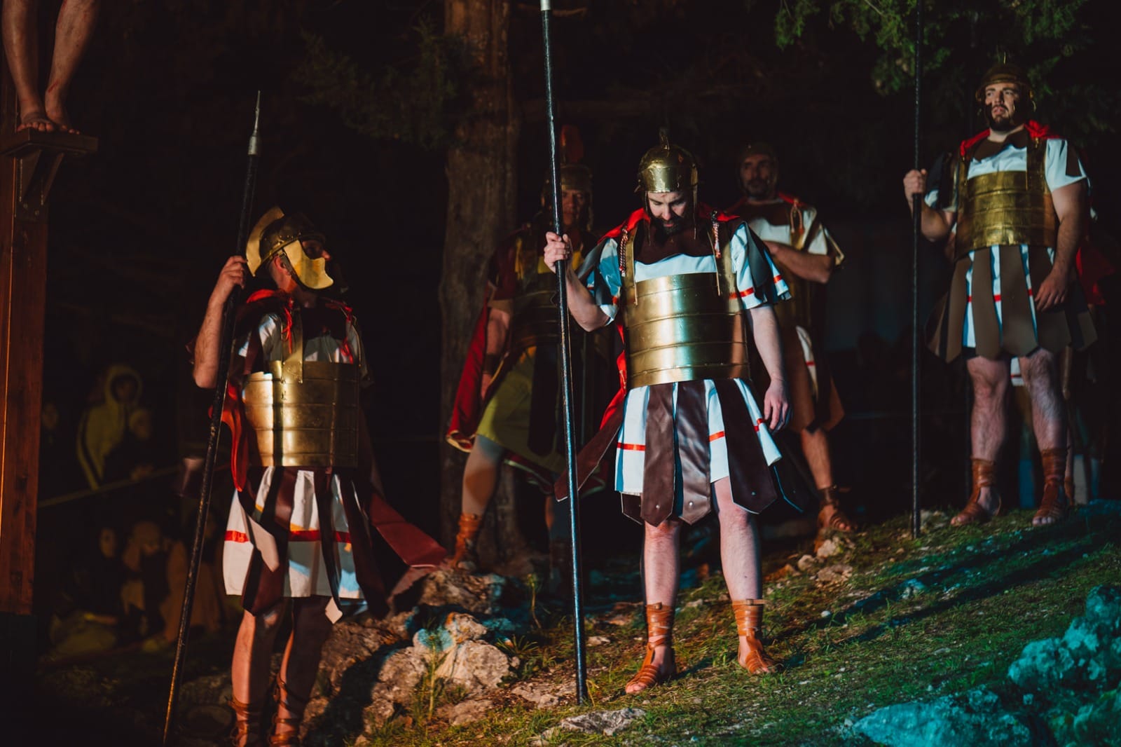 Posebno dojmljiva bila je scena raspeća, smještena pod mitskom starohrvatskom utvrdom Topanom. Upravo ta scena ostavlja neizbrisiv dojam na posjetitelje i ujedno je postala zaštitni znak ove korizmene manifestacije.
