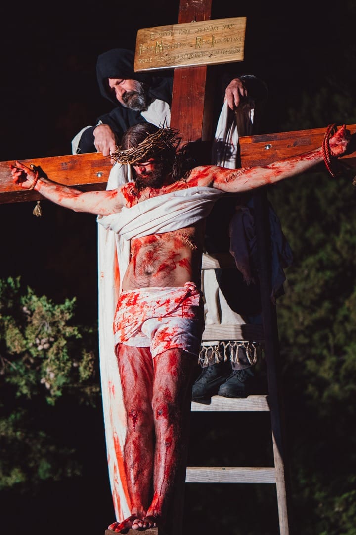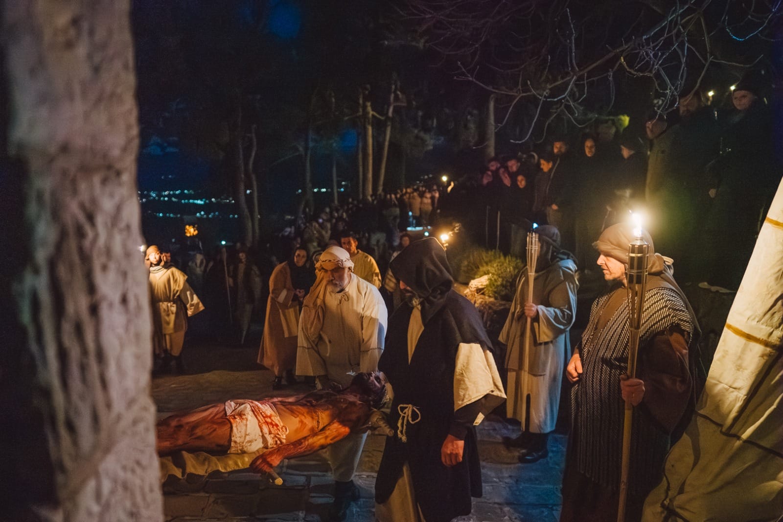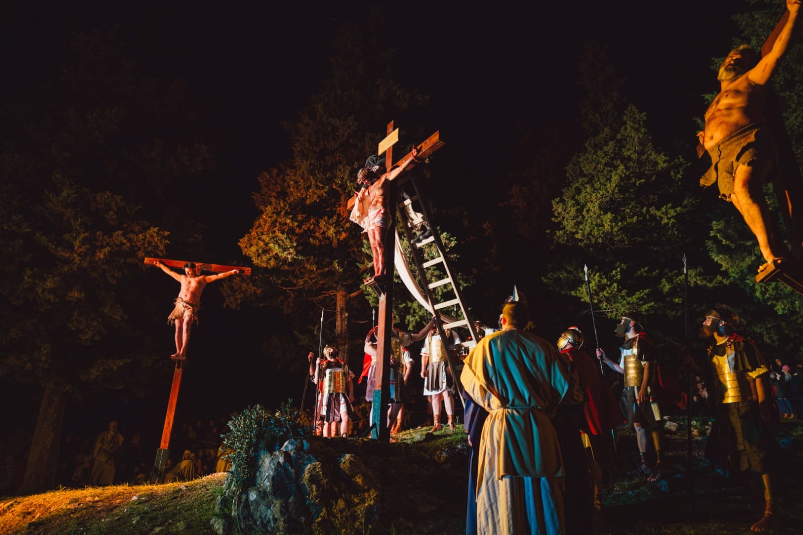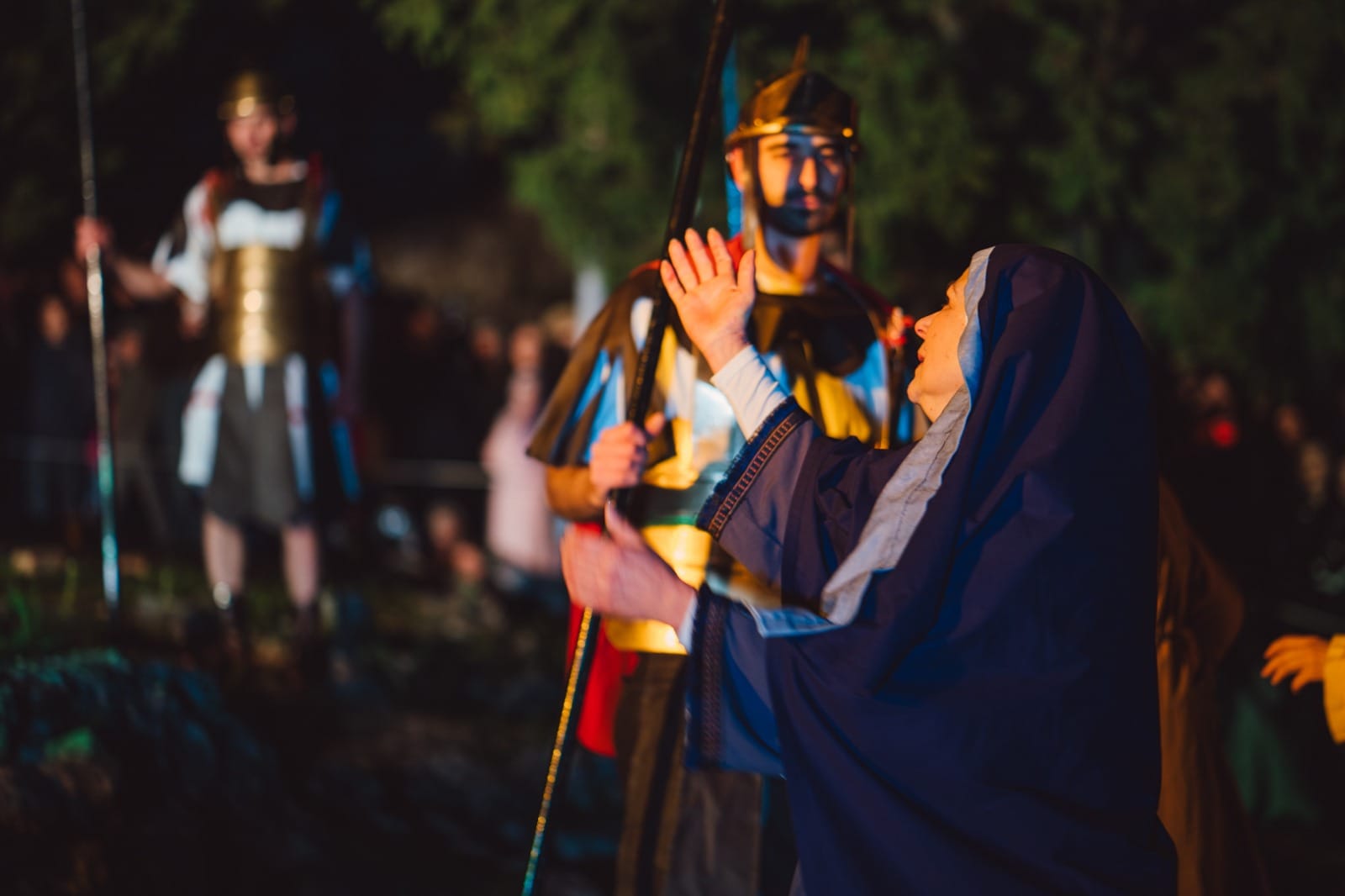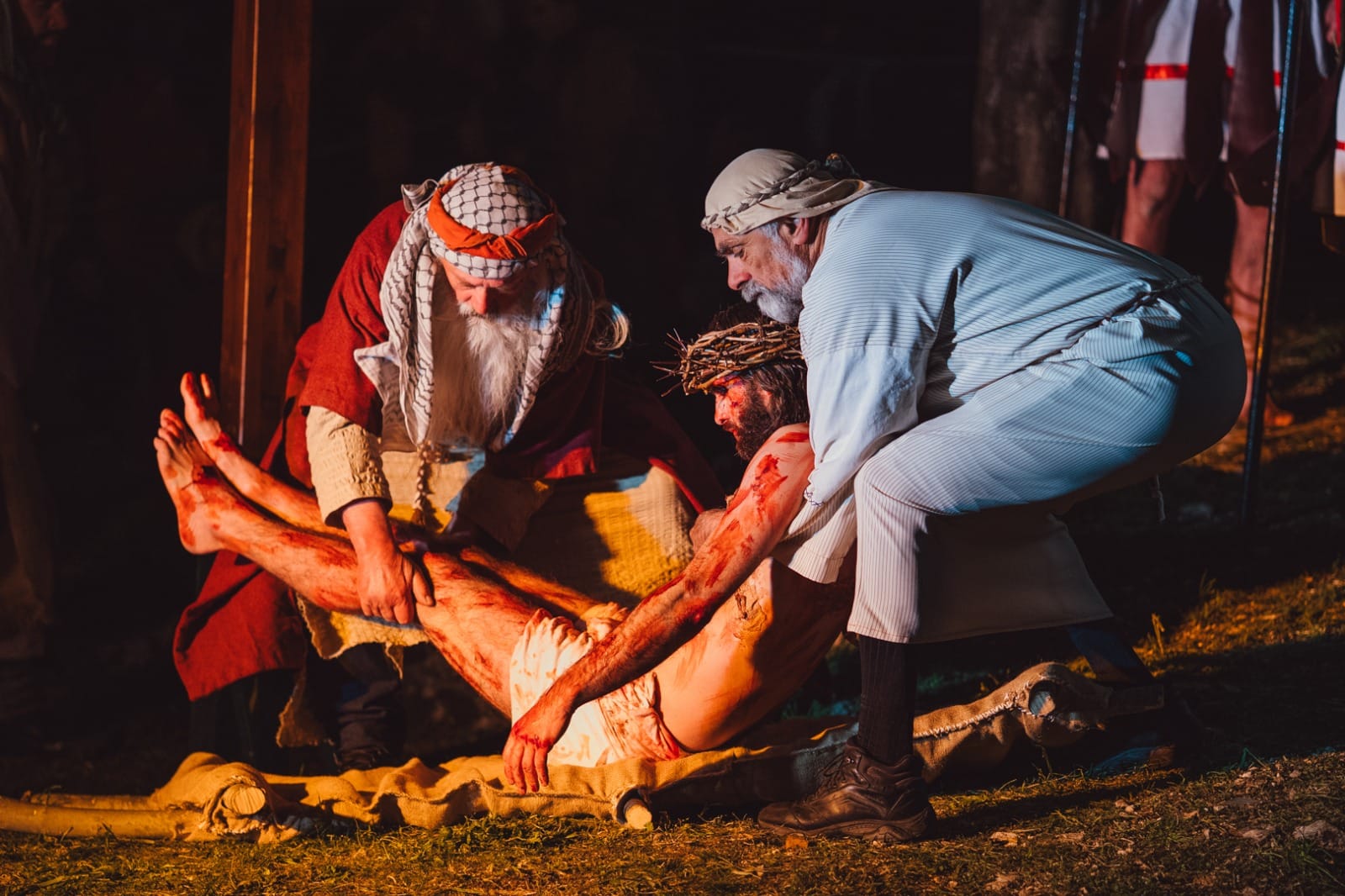 Posebno dojmljiva bila je scena raspeća, smještena pod mitskom starohrvatskom utvrdom Topanom. Upravo ta scena ostavlja neizbrisiv dojam na posjetitelje i ujedno je postala zaštitni znak ove korizmene manifestacije.