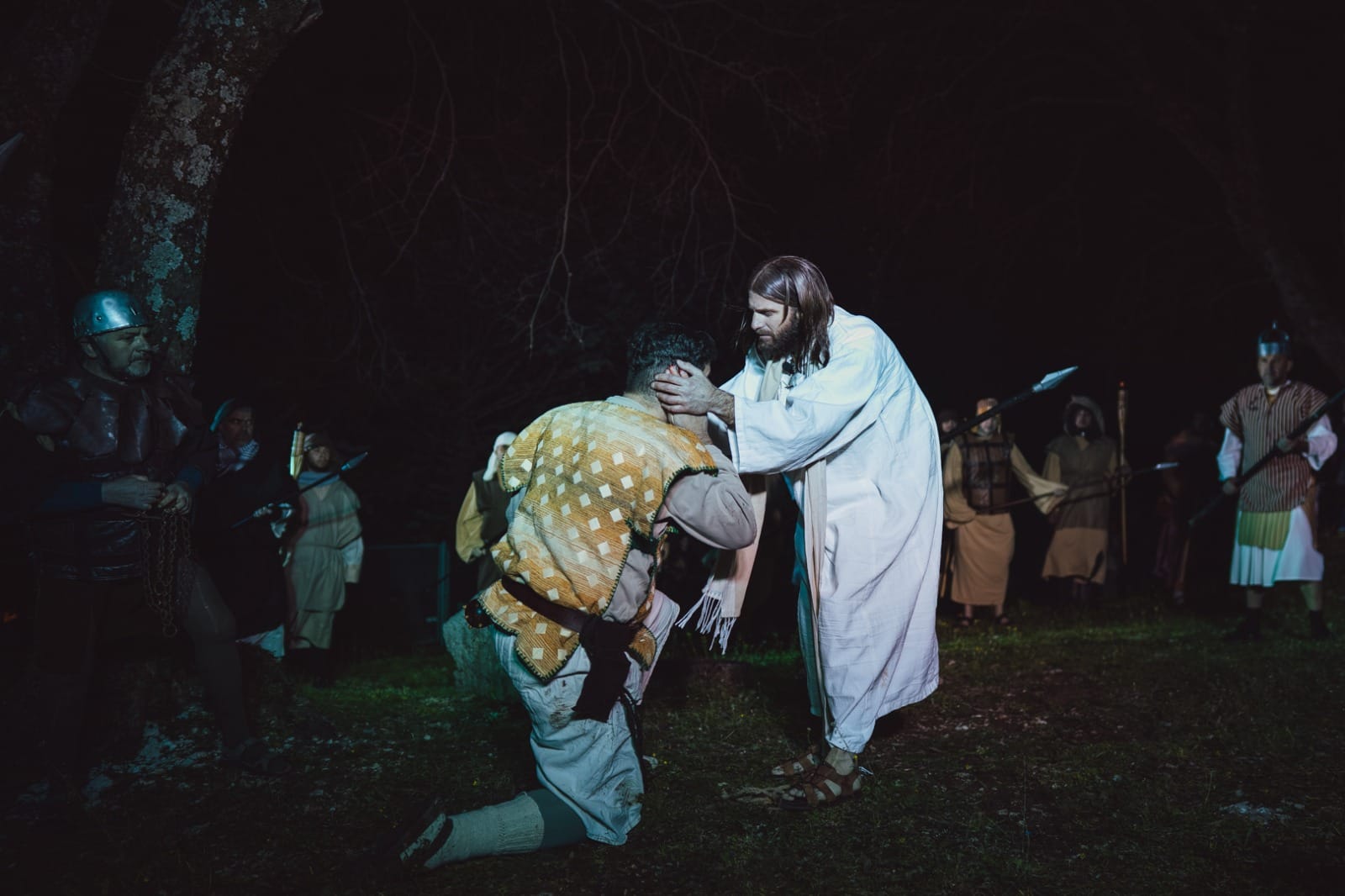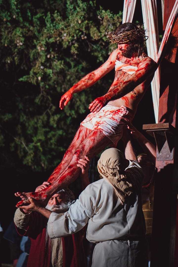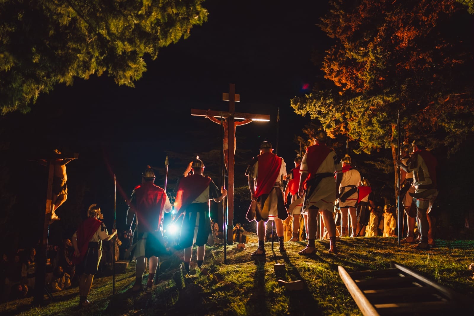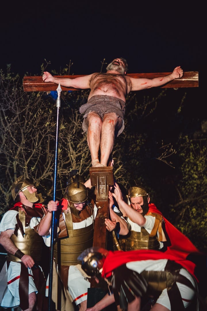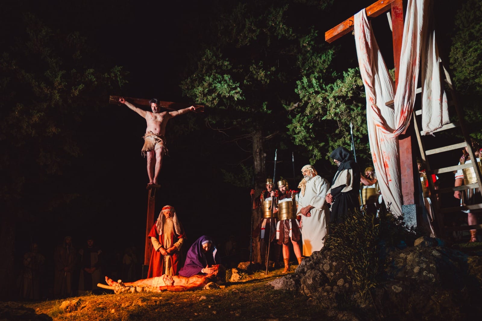 Posebno dojmljiva bila je scena raspeća, smještena pod mitskom starohrvatskom utvrdom Topanom. Upravo ta scena ostavlja neizbrisiv dojam na posjetitelje i ujedno je postala zaštitni znak ove korizmene manifestacije.