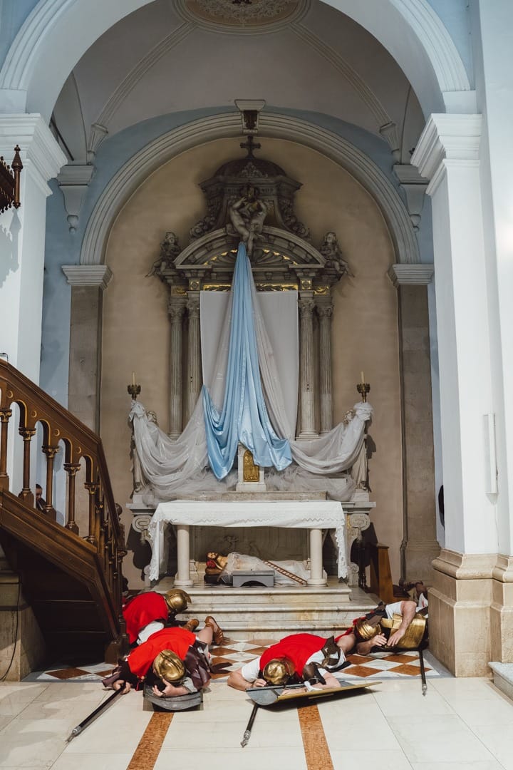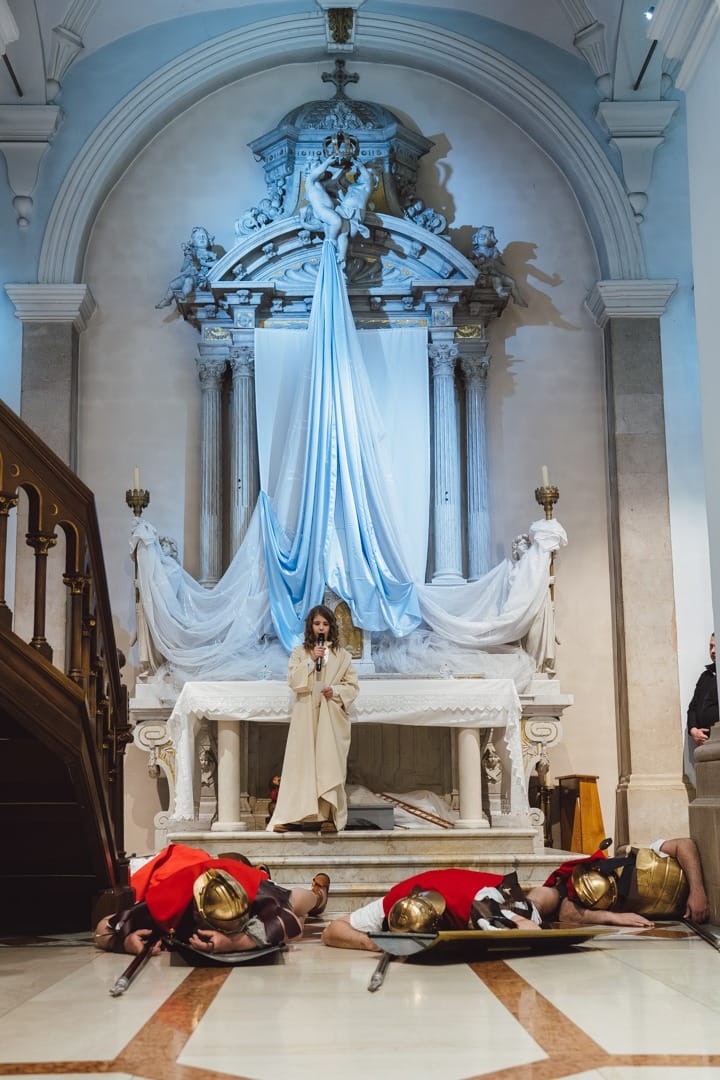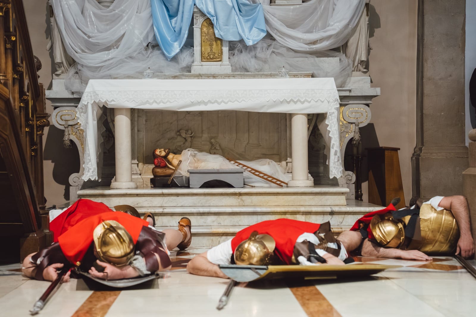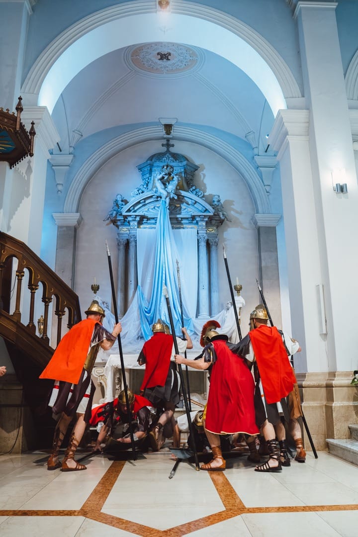Žudije (čuvari Kristova groba) padali su pred grobom u sklopu uprizorenja Isusova uskrsnuća, što predstavlja vrhunac tog tradicijskog običaja u Dalmaciji.