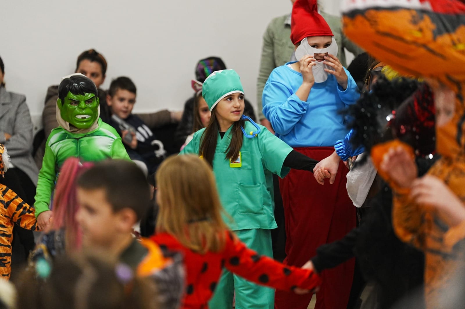 Djeca su kao i proteklog vikenda uživala uz glazbu, smijeh i ples. Bilo je tu raznih kreacija, od super junaka do princeza, a pojavio se i jedan mali Tiranosaur. Sve je završilo podjelom slatkih poklona malim mačkarama.