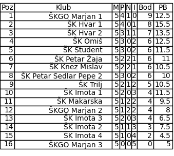 Završnica turnira bila je iznimno napeta, budući da je čak pet klubova u posljednjem kolu bilo u igri za prvo mjesto. Posebno se istaknula i ekipa iz Hvara, koja je do samog kraja držala vodeću poziciju.