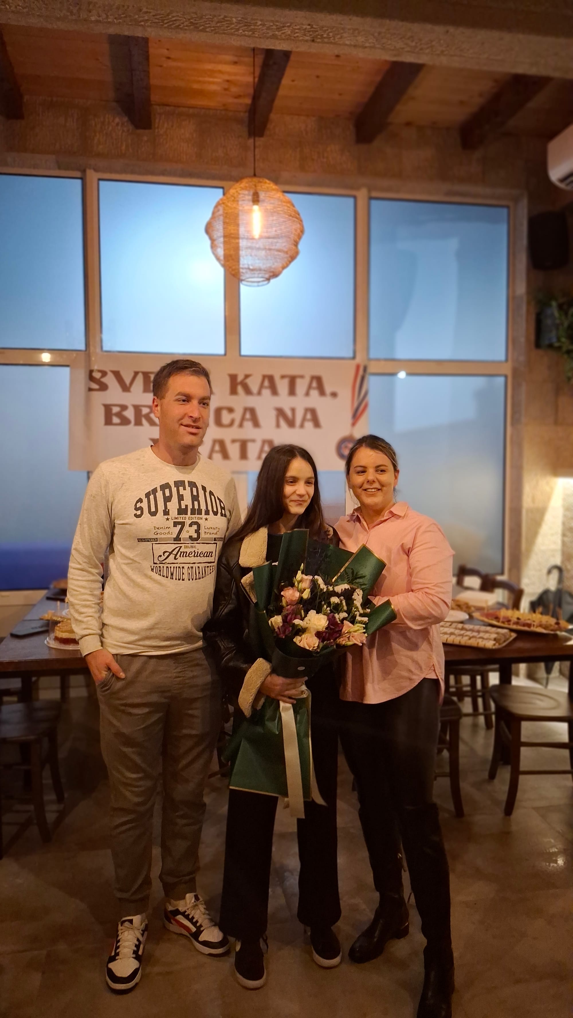 Doček je organizirao Klub tajlandskog boksa Imotski u Vinariji Jerković. Katija je primila veliki broj čestitki i buketa cvijeća, a slavlje je nastavljeno uz nezaobilaznu imotsku spizu i naravno uz vrhunsku imotsku kujundžušu.