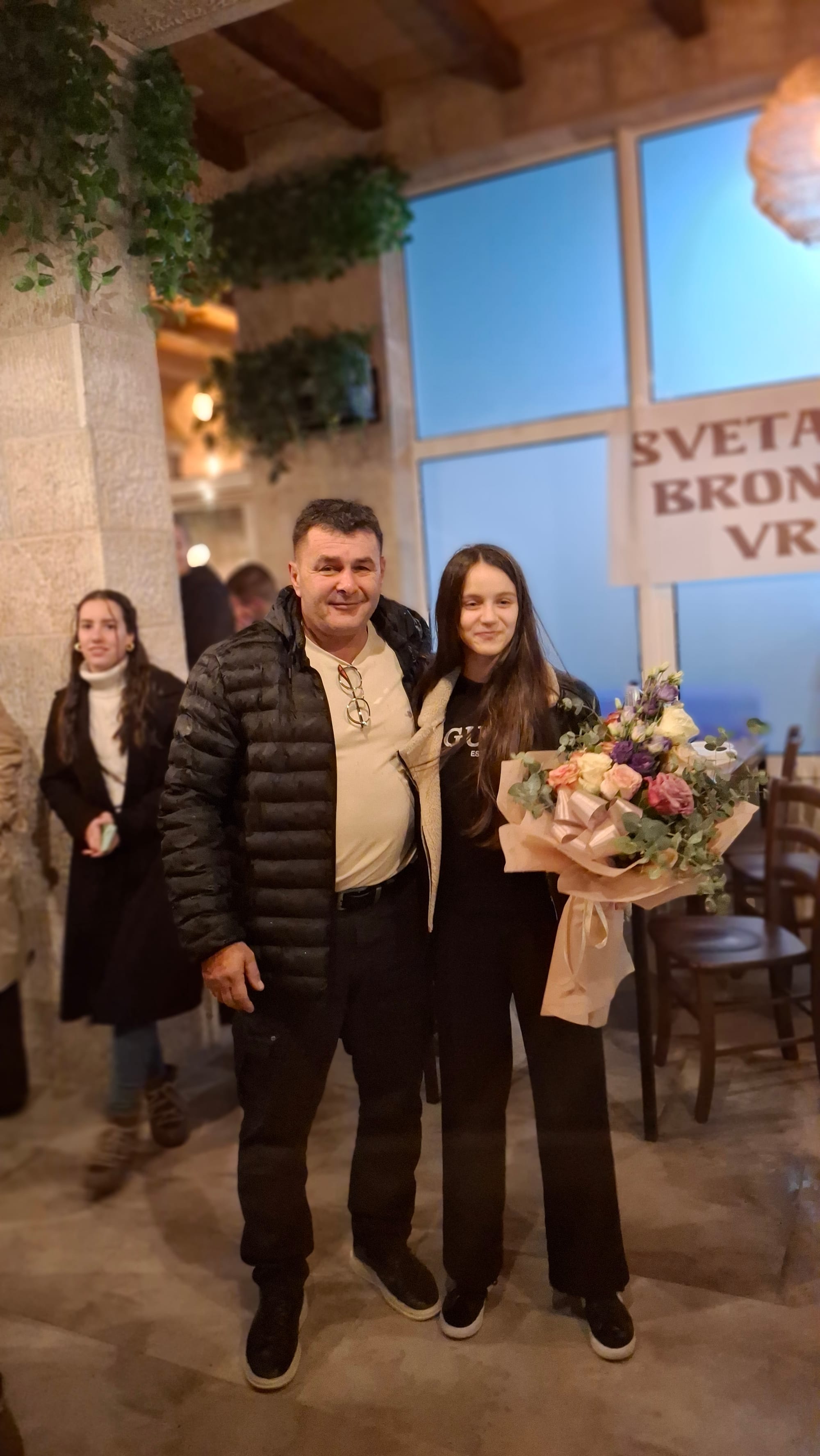 Nakon povijesnog uspjeha na Europskom prvenstvu u tajlandskom boksu u Ateni, gdje je osvojila brončanu medalju u kategoriji juniorki do 42 kg, naša Katija Kvasina večeras je unatoč jakoj kiši uz pratnju trenera Frane Kutleše dočekana u svom Imotskom. Gorile su bengalke uz povike Katija, Katija...njenih najmilijih, prijatelja i simpatizera kluba. Posebno emotivan trenutak bio je čvrsti majčin zagrljaj.