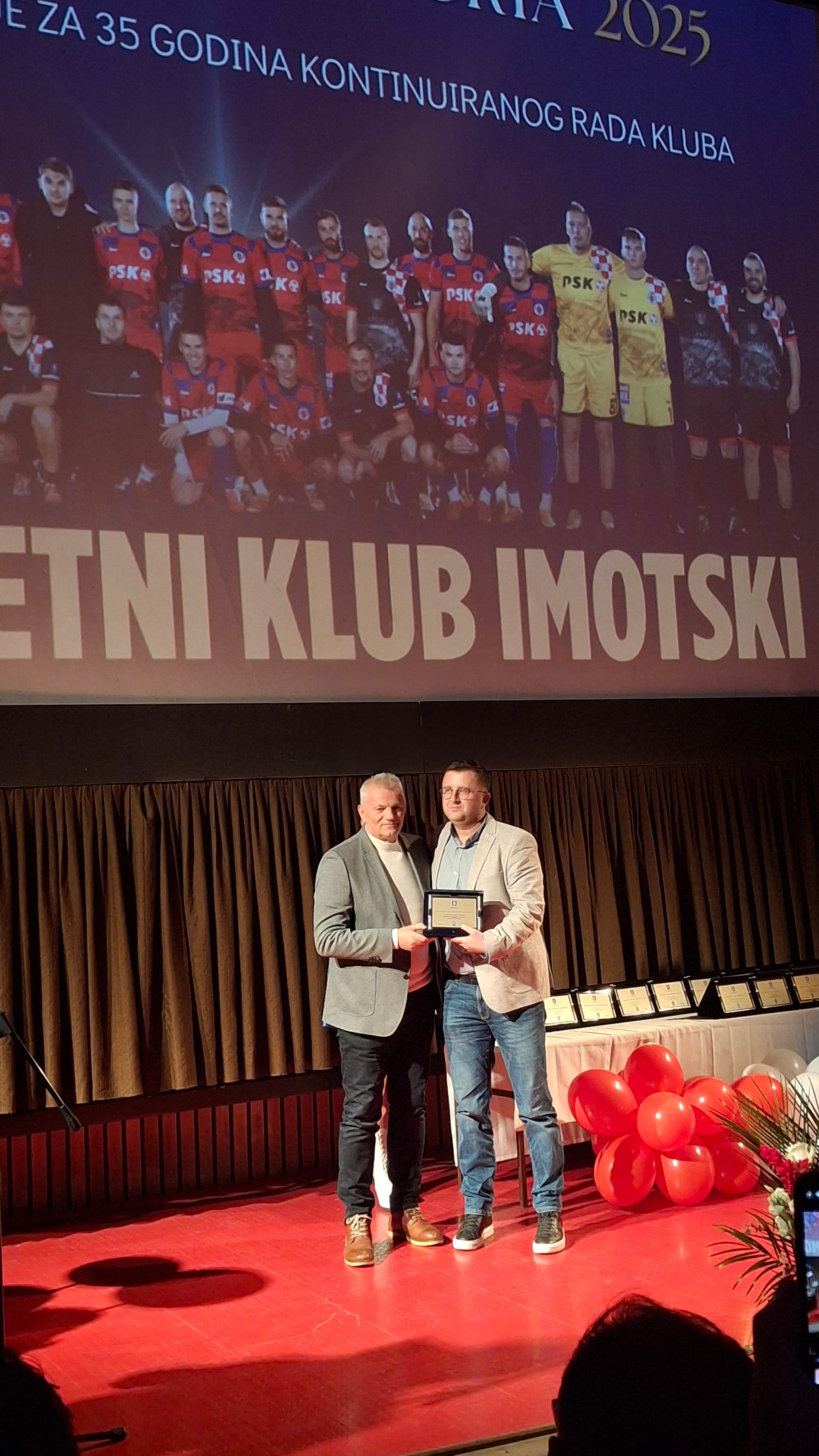Posebno priznanje za 35 godina kontinuiranog rada kluba dobio je Nogometni klub Imotski.