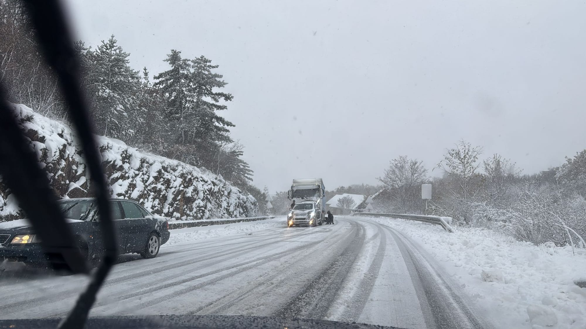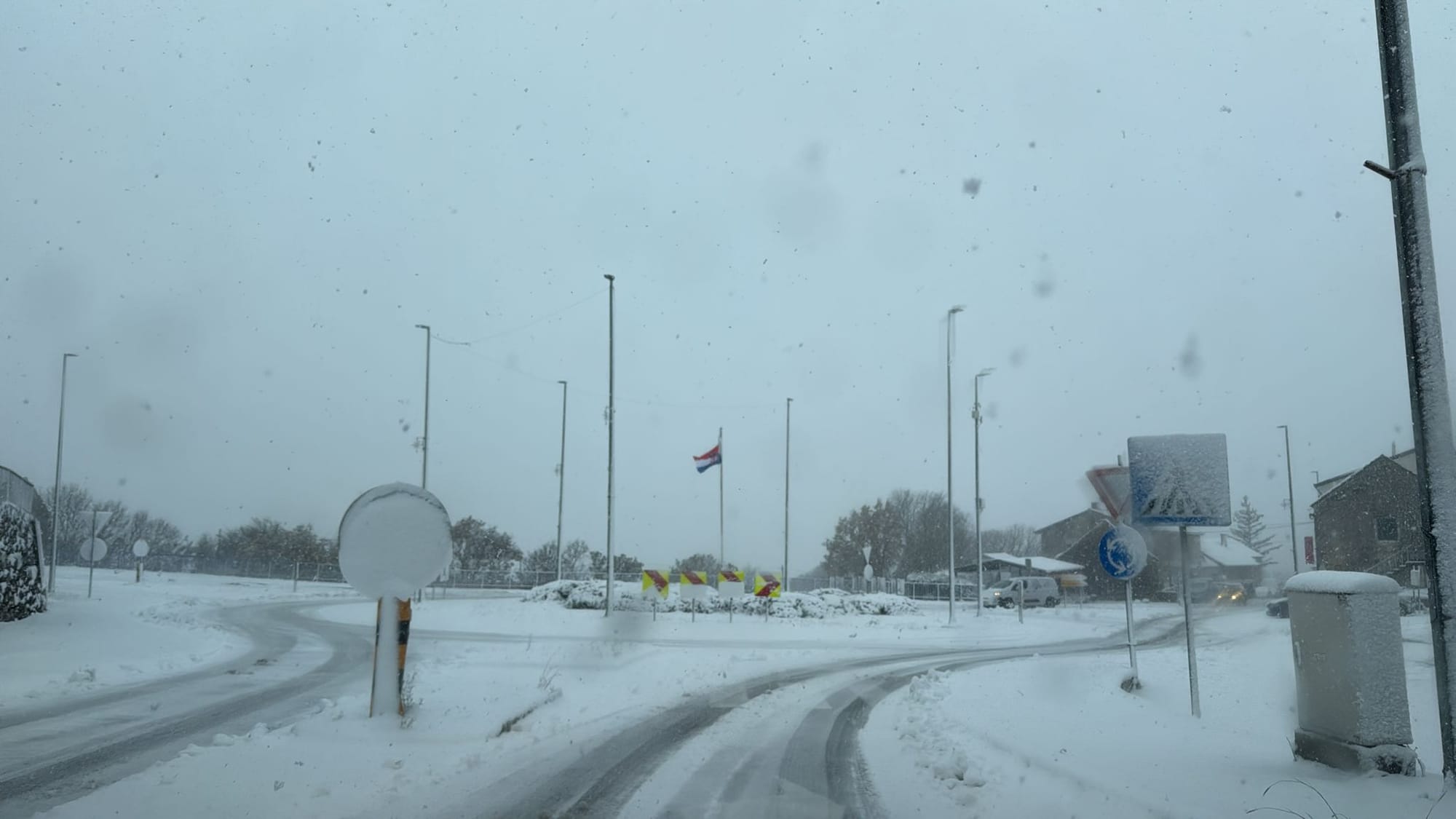Snijeg koji pada od jutarnjih sati stvorio je kao na prometnicama. Prvo su se zabijelili viši predjeli Imotske krajine, a nešto kasnije snijeg je počeo padati i u Imotskom ali se još ne zadržava na tlu. Zbog zimskih uvjeta i olujnog vjetra trenutno nema slobodnog cestovnog pravca za kamione s prikolicama i tegljače s poluprikolicama iz smjera unutrašnjosti prema Dalmaciji i Rijeci/Istri te obratno.