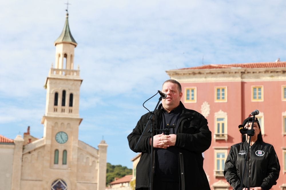 Nakon prosvjeda na Rivi, sudionici su se uputili pred Županijski sud u Splitu kako bi poslali „simboličnu poruku“. „Sud trenutno ne radi, no želimo pružiti podršku našim ljudima koji su u pritvoru“, rekao je Buzdovačić.