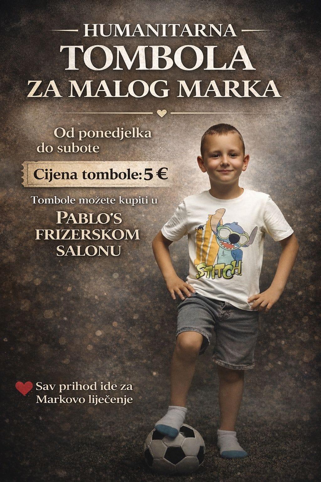 Cijena jedne tombole iznosi 5 eura, a svi zainteresirani mogu sudjelovati od ponedjeljka, 16. ožujka, do subote, 21. ožujka. Tombole se mogu kupiti u Pablo’s frizerskom salonu, gdje organizatori pozivaju građane da se uključe u ovu humanitarnu akciju.