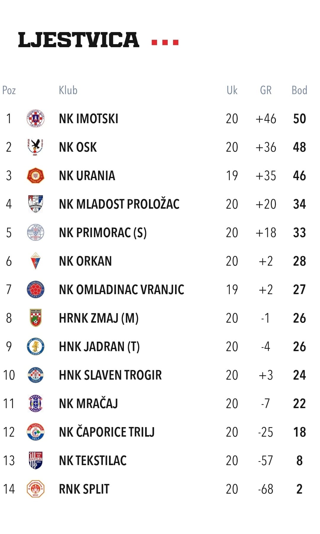 Nogometaši Imotskog ostvarili su vrijednu pobjedu u 20. kolu 1. Županijske nogometne lige svladavši u gostima NK Tekstilac iz Sinja rezultatom 3:1 i nastavili pobjednički niz.