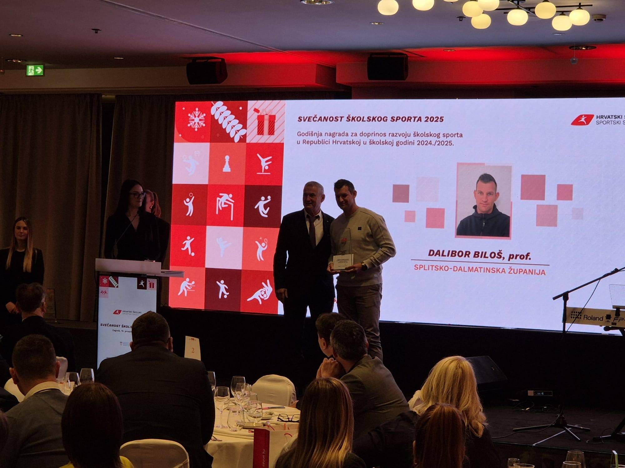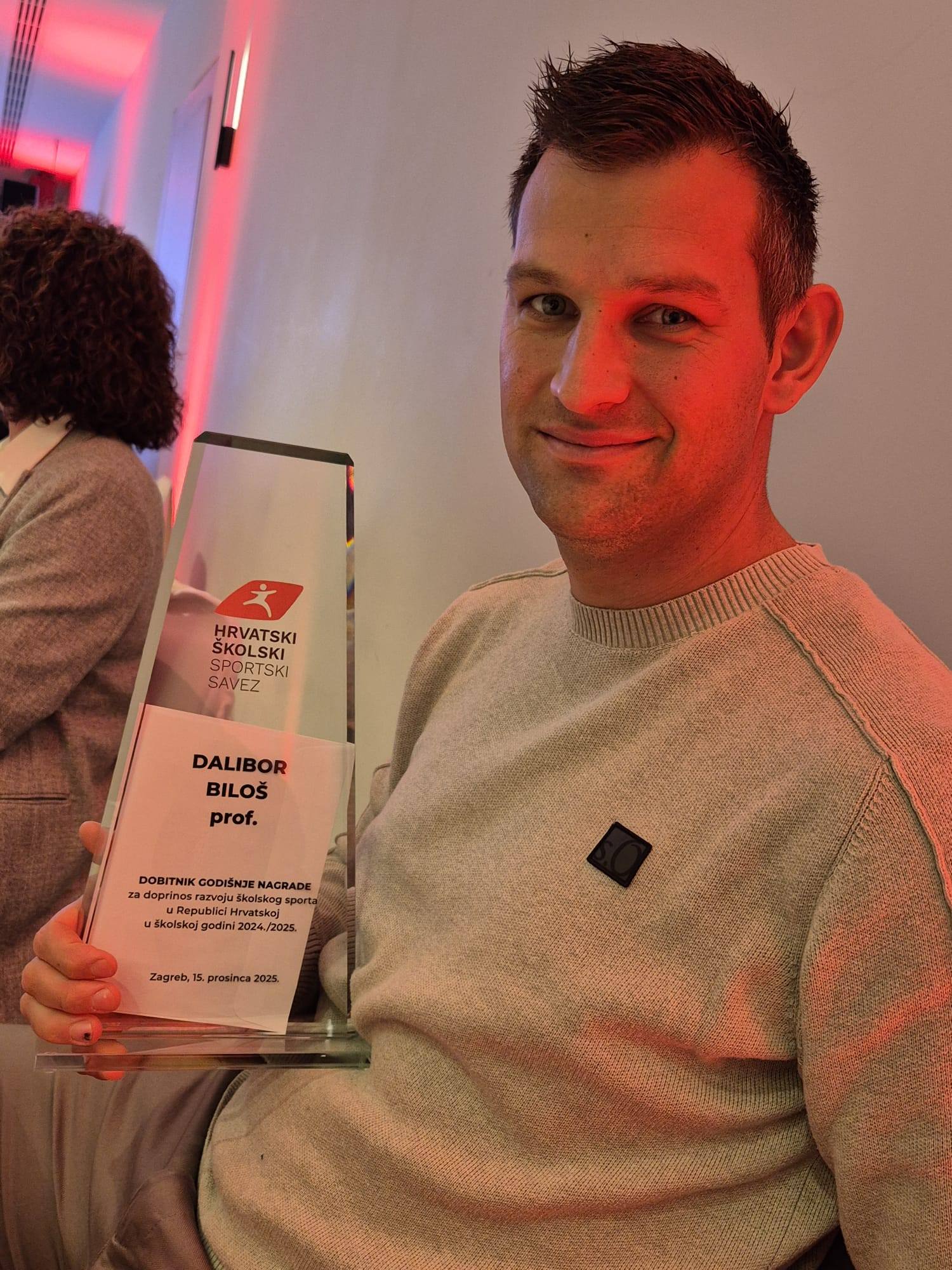 Profesor tjelesne i zdravstvene kulture Dalibor Biloš iz Osnovne škole Krivodol dobitnik je još jedne nagrade i to Godišnje nagrade Hrvatskog školskog sportskog saveza za doprinos razvoju školskog sporta u Republici Hrvatskoj za školsku godinu 2024./2025.