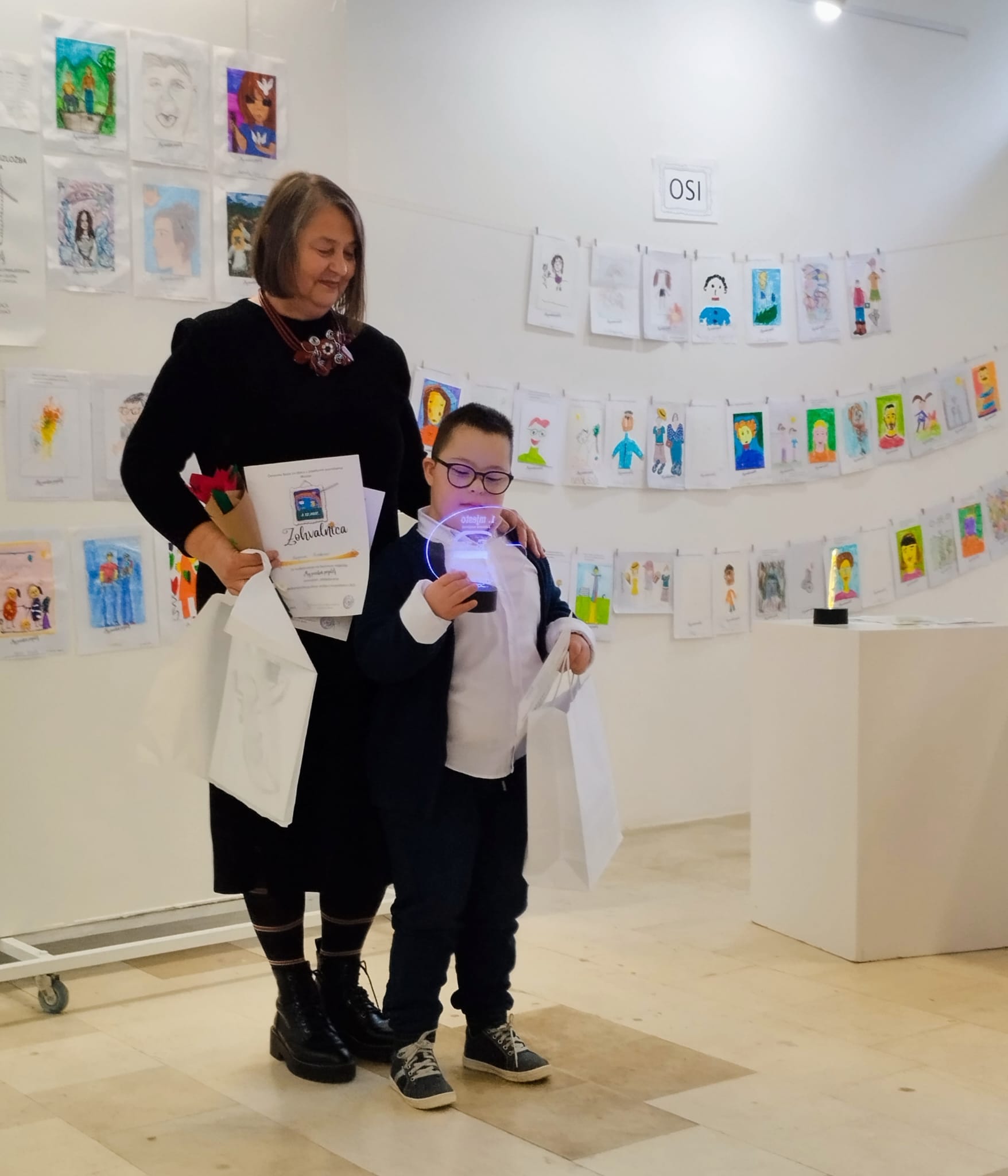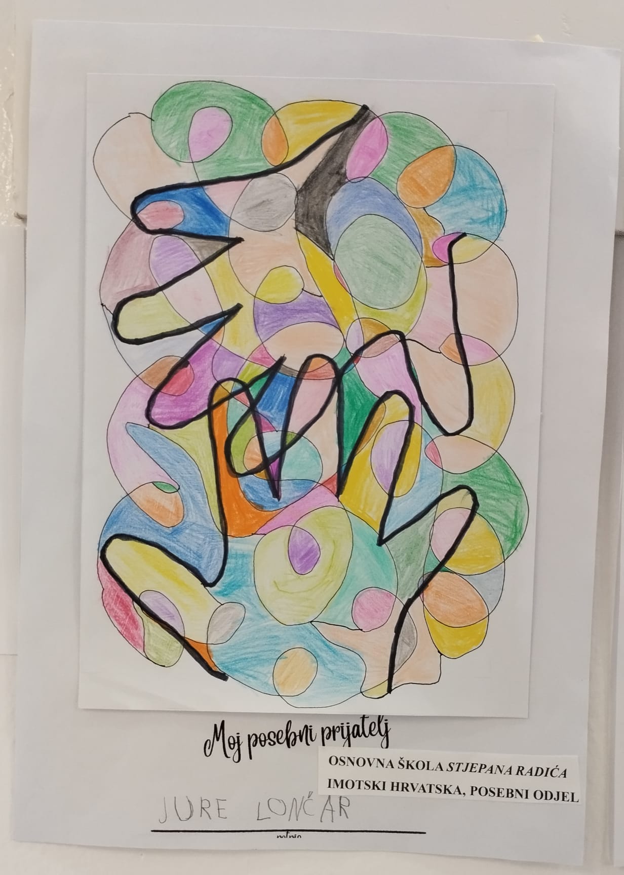 Naša Osnovna škola “Stjepan Radić” Imotski već se profilirala i prepoznata je kao škola koja, između ostalog, uspješno integrira učenike s teškoćama u razvoju. Tako je bilo i ovog petka, 12. prosinca 2025. kada je naš učenik Jure Lončar, u kategoriji učenika s teškoćama u razvoju, osvojio prvu nagradu na međunarodnom likovnom natječaju “Moj posebni prijatelj” koju je organizirala Osnovna škola za djecu s posebnim potrebama Mostar. Dodjela nagrada bila je u Galeriji kraljice Katarine Kosača u Mostaru.