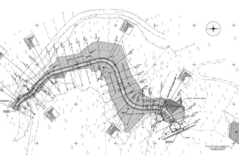 Materijal za nasipavanje planira se iskopavati unutar akumulacije, na udaljenosti od oko 2,5 kilometra, zbog čega će biti potrebno urediti i održavati pristupne i gradilišne putove. Kako bi se spriječili gubici vode u kontaktu s vapnenačkom stijenom na dijelu dna akumulacije, površine uz armiranobetonsku membranu obložit će se bentonitnom membranom (GCL). Nasip od krupnog kamenog materijala uz membranu imat će dodatnu ulogu smirivanja vodotoka i smanjenja erozivnog djelovanja na dno jezera.