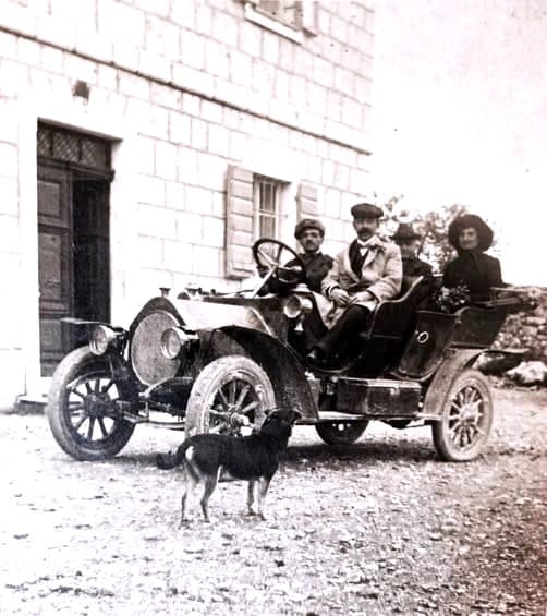 U automobilu koji je bio velika senzacija za mali gradić Imotski naprijed sjede šofer i dr Koloman Jerković, a iza je dr Mile Vuković (1871-1943) te nepoznata žena. Vlasnik automobila bio je i Đuro Negrini, advokat iz Dubrovnika koji je neko vrijeme bio na službi u Imotskom. Fotografiju Negrinija u automobilu oko kojeg su se skupili mnogi mještani snimio je sarajavski fotograf St. v. Ossko i ona je reproducirana u razglednicu 1911. godine. Fabjan Truccolo (1874.) kupio je među prvima osobni automobil koji je korišten kao taxi, a vozio ga je Ante Bralić. Ova fotografija također je reproducirana u razglednicu poslanu iz Imotskog 1912. godine u Spljet gospođici Slavki Bitanga, kćeri dr. Augustina uz tekst "Uspomena našeg putovanja". Fotografija je devedesetih objavljena i u listu Imotska krajina. U nastavku se daju pričica dr Mile Vukovića o ovom automobilu: