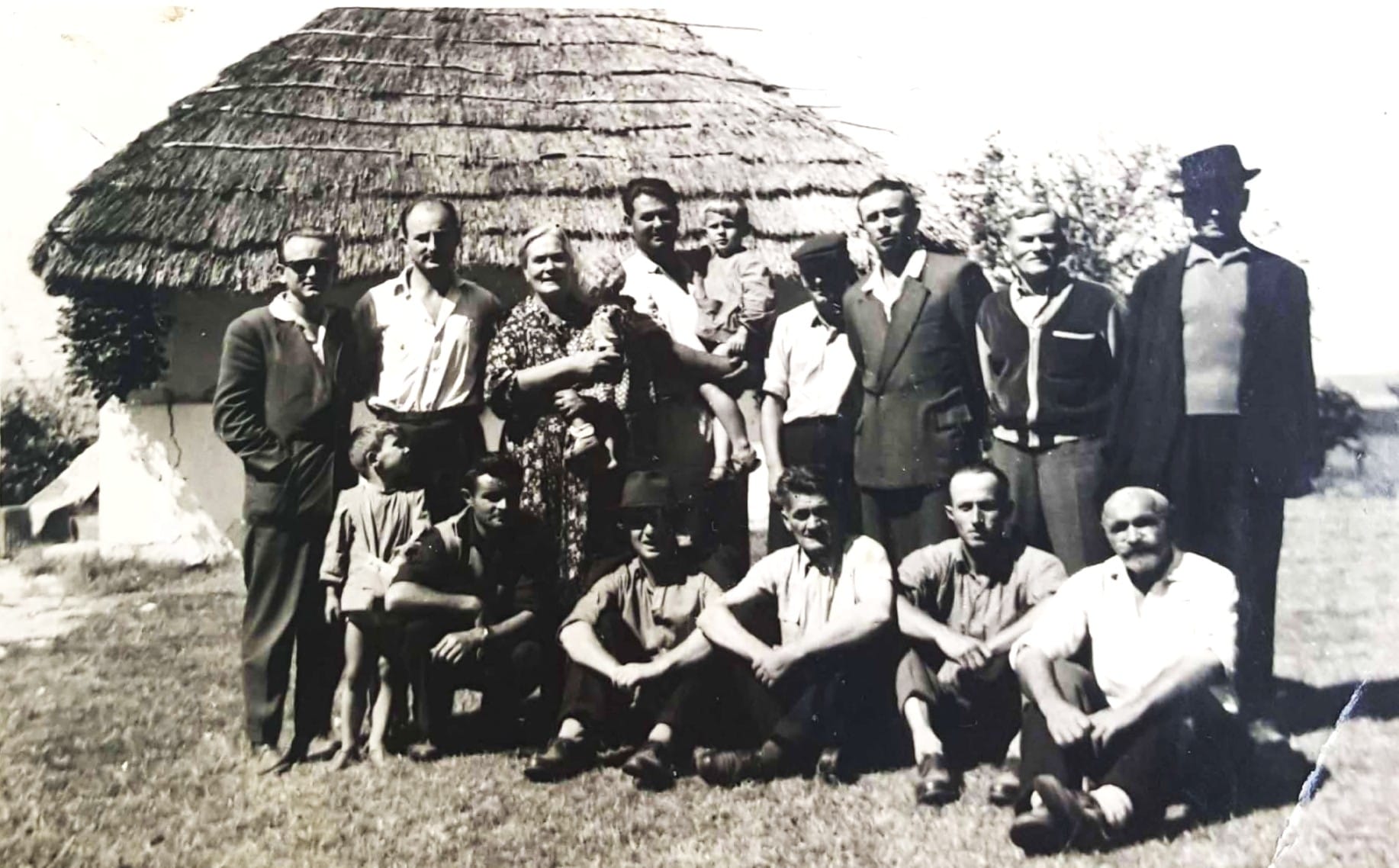 Među grupom berača prvi lijevo stoji dipl.ing agr. Slavko Jenč, tada vodeći hrvatski vočar kojeg je dr Pave Radovinovic pozvao radi planirane sadnje jabuka i drugog voca. Drugi slijeva stoji Slavko Tonković, do njega je punica Marija Franceshi Radovinović koja drži u naručju unuku Anamariu, desno jedan berač drži unuka Josipa te je ispred unuk Jago. Krajnje desno sjedi poljar Mijo Jukić, koji je bio zadužen za čuvanje imotskoga polja. Iako su u Imotskoj krajini u vihoru drugog svjetskog rata stradali brojni vinogradi zbog nemogućnosti kontinuirane obrade vinograda i nedostatka radne snage nakon rata pedesetih godina dvadesetog stoljeća počela je intezivna obrada vinograda uglavnom, u privatnom sektoru. Tako je dr Pave Radovinović na svom posjedu u Lugu imao na velikim površinama tri vinograda u kojima su bile zasađene brojne sorte grožđa od poznate imotske kujunđuše, bijelog stolnog grožđa do ružice i tada u Imotskoj krajini veoma rijetkih i gotovo nepoznatih hamburškog muškata i bijele sultanine, vodeće sorte u svijetu za proizvodnju suhog grožđa. Berba u Jagulovim vinogradima trajala je danima uz pomoć najamne radne snage kojima je bio organiziran smještaj i prehrana o čemu se brinula Pavina supruga Marija.