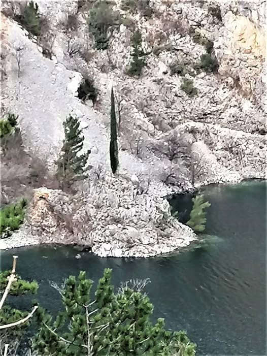 - o jezerskom otočiću s čempresom koji se rijetko pojavljuje, isključivo kada vodostaj jezera iznimno naraste, potapajući obale i ostavljajući tek vrh uzvišene stijene sa čempresom kojeg je književnik Petar Gudelj nazvao "zelenim kopljem"