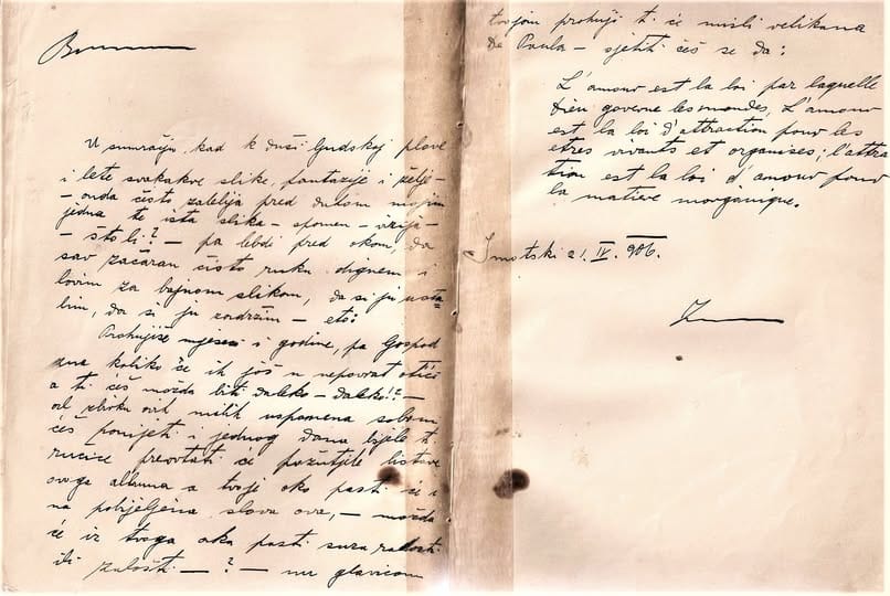 U spomen ljubavi zapisano Zorki Bitanga (1885-1958) u Imotskom prije 120 godina, 1906. godine. Zapisi u Zorkinom spomenaru pisani su od 1900. do 1909. godine na hrvatskom, talijanskom, francuskom i njemačkom jeziku. Spomenar je pun dubokih životnih poruka, pa je kao takav izvor informacija o društvu i kulturi vremena u kojem je nastajao. Gotovo svi upisivači upisivali su svoje puno ime i prezime, datum i uglavnom Imotski kao mjesto upisivanja. U smiraju kad k duši ljudskoj plove i lete svakakve slike, fantazije i želje – onda često zaleluja pred sudom mojim jedna te ista slika – spomen – vizija – što li? – pa lebdi pred okom, da sav začaran čisto ruku dignem i lovim za bajnom slikom, da si je ostavim, da si ju zadržim – eto: Prohujiše mjeseci i godine, pa Gospod zna koliko će ih još u nepovrat otići, a ti ćeš možda biti daleko – daleko!? – od zbirki ovih milih uspomena sobom ćeš ponijeti i jednog dana bijele ti ručice prevrtati će požutjele listove ovoga albuma, a tvoje oko pasti će i na pobijeljena slova ova, – možda će iz tvoga oka pasti suza radosti ili žalosti – ? – a glavicom tvojom prohuji ti će misli velikana De Paula – sjetiti ćeš se da:L`amour est la loi par laquelle rien governe les mondes, l`amour est la loi d`attraction pour les êtres vivants et organises, l`attraction est la loi d`amour pour la matière magnifique.Imotski, 21.IV. 1906.