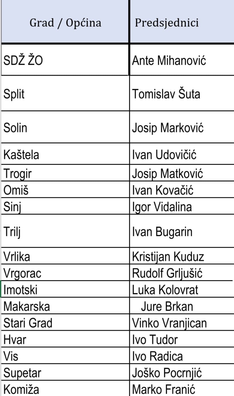 Ovo su izabrani predsjednici gradskih i općinskih organizacija: