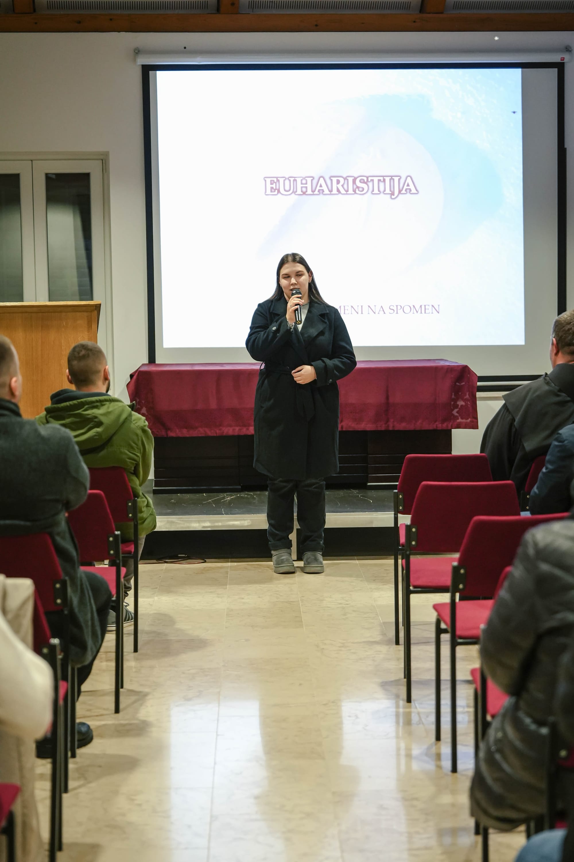 Govoreći o Euharistiji, predavač je naglasio kako je bit Euharistije posvećenje čovjeka i davanje hvale Bogu. Predavač je u svome predavanju tumačio značenje svakog od dijelova mise i tako nas sve uveo u lakše razumijevanje otajstava naše vjere.