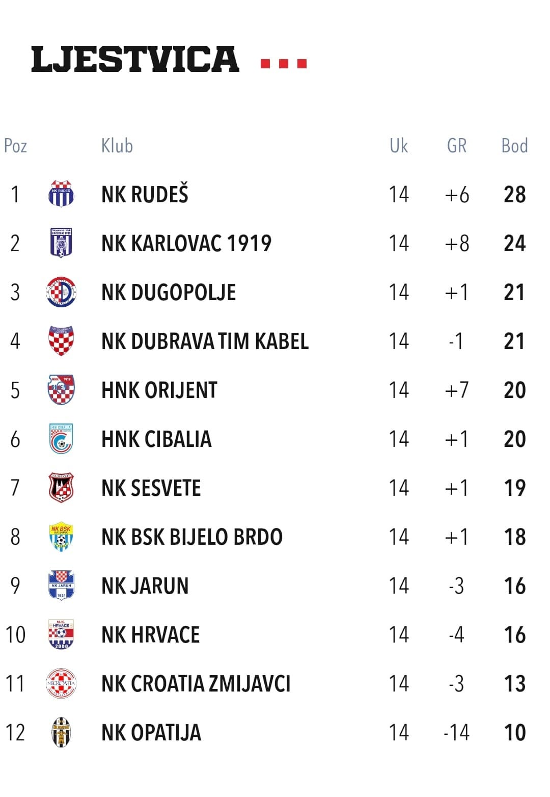 Nogometaši Croatie Zmijavci, nakon niza loših rezultata, remizirali su s drugoplasiranom momčadi 1. NL Karlovac 1919 rezultatom 2:2. Zanimljivost ovog dvoboja je činjenica da je domaći igrač, Tomislav Gudelj ispisao povijest 1. NL. Naime, današnjim pogotkom protiv Karlovčana kojim je Croatia povela 2:1, Gudelj se odvojio od Ilije Nesterovskog i postao samostalno najbolji strijelac u povijesti 1. NL. U dresovima Croatie i Rudeša, Tomislav je postigao 45 pogodaka, čime je potvrdio status pravog golgetera i legende lige.
