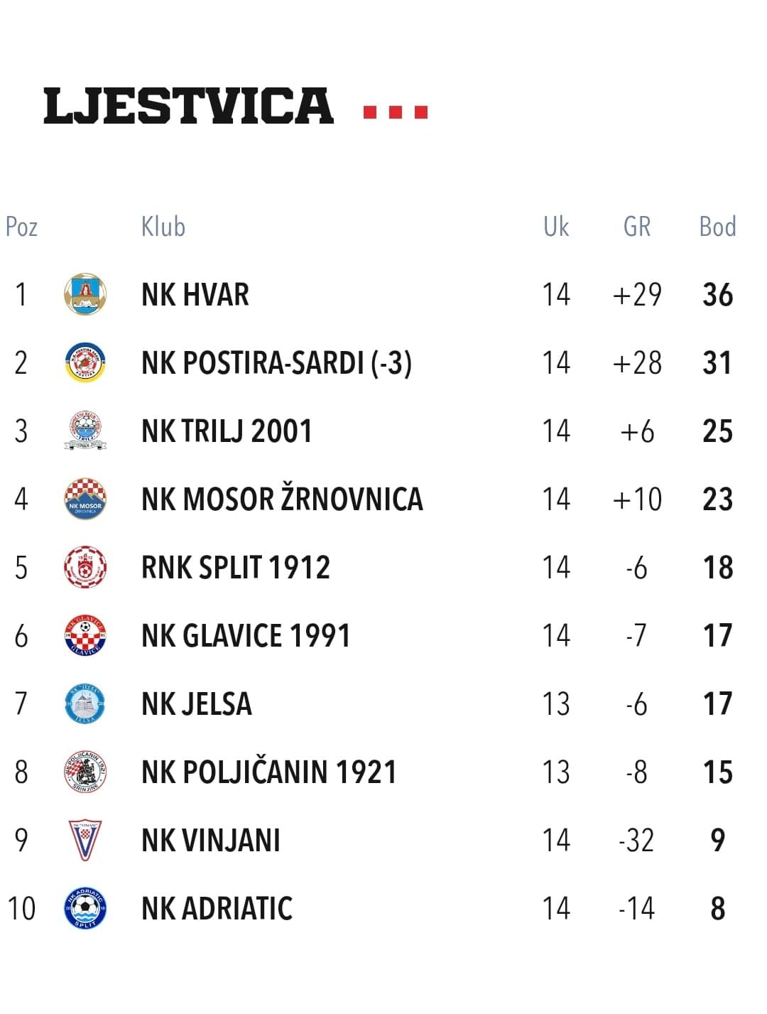 Ovim porazom Vinjani ostaju na pretposljednjem mjestu prvenstvene ljestvice, s tek jednim bodom više od posljednjeplasiranog Adriatica.