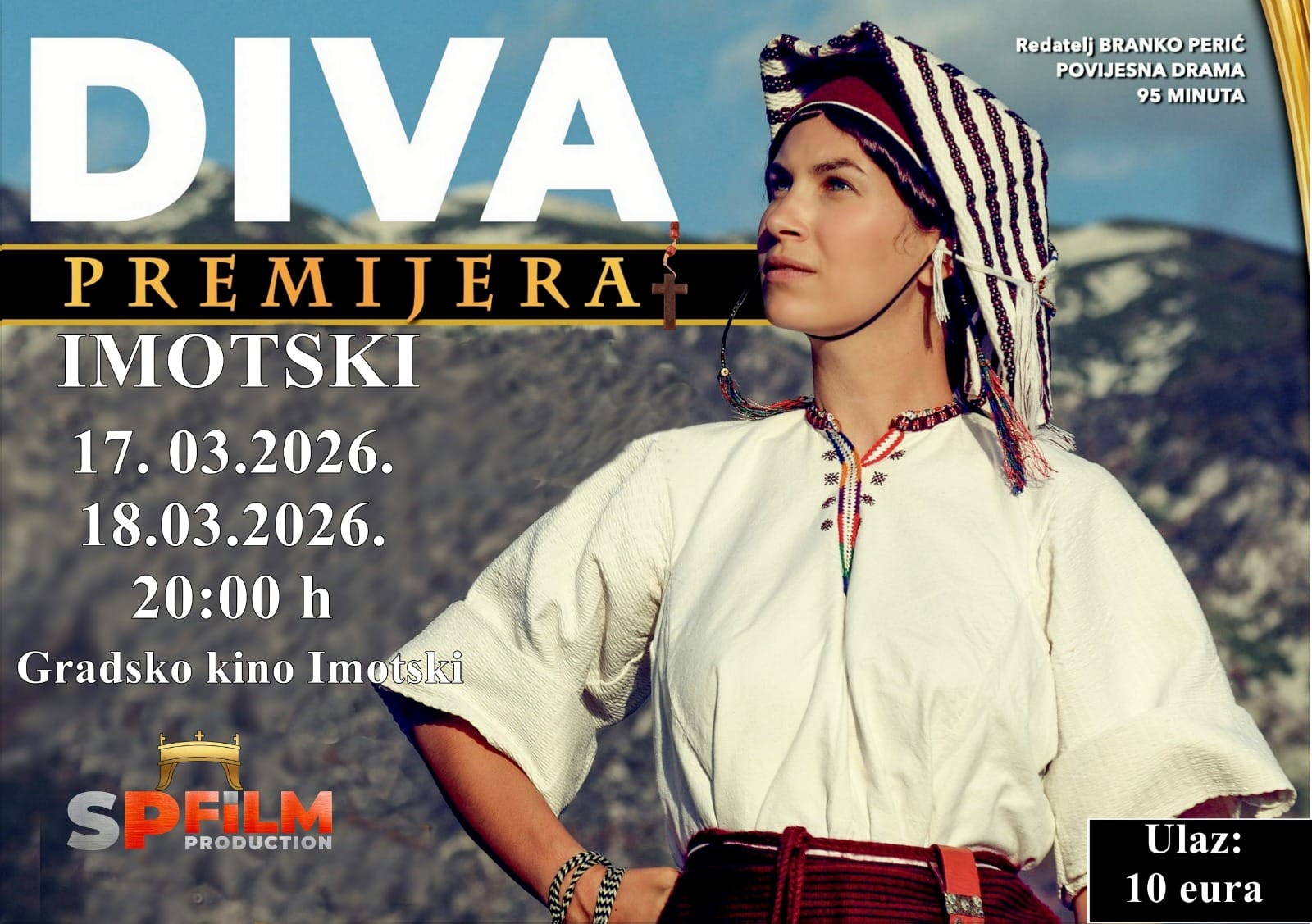 Povijesna drama Diva u režiji Branka Perića bit će premijerno prikazana u Gradskom kinu Imotski 17. i 18. ožujka 2026. godine s početkom u 20 sati.