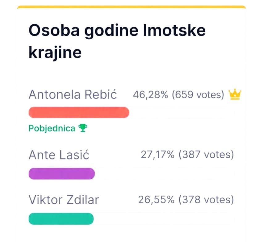 Rezultati glasovanja u anketi na web portalu Radio Imotskog: