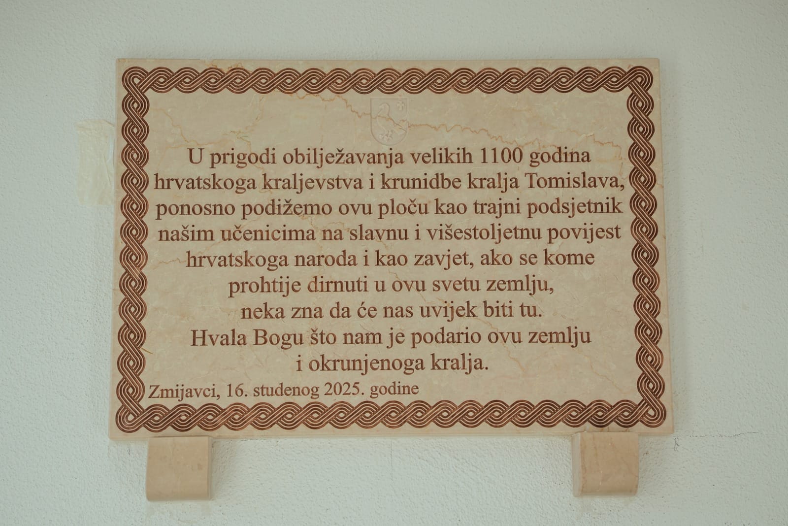 Škola Zmijavci postavila spomen ploču povodom 1100. obljetnice krunidbe Kralja Tomislava