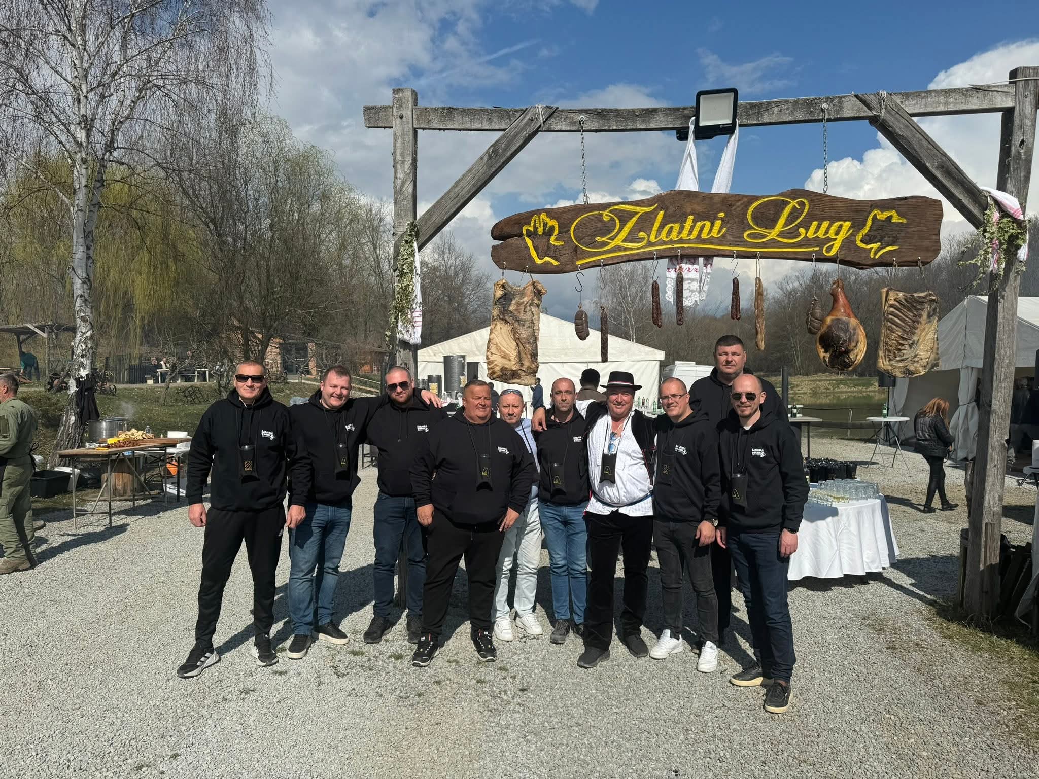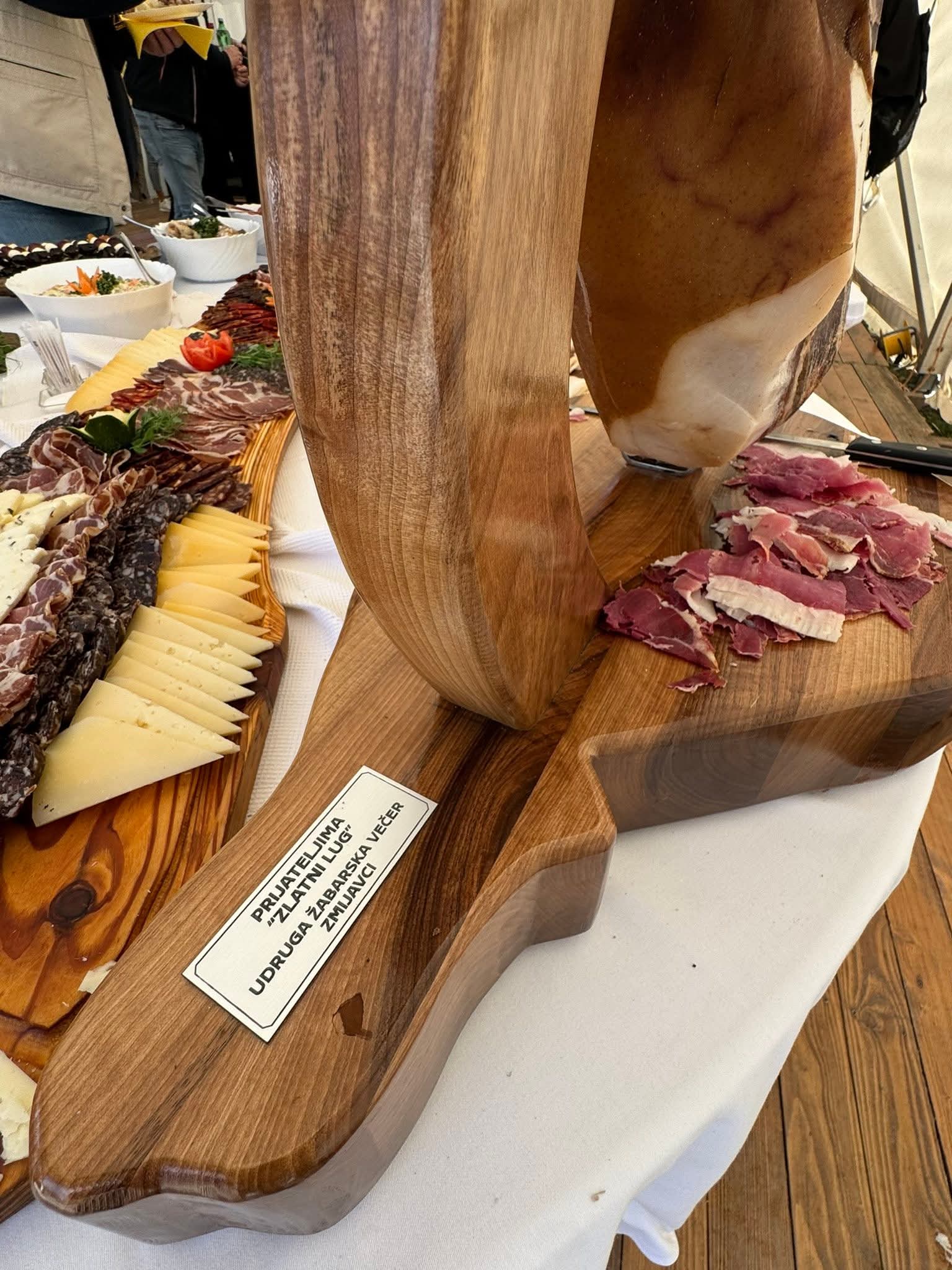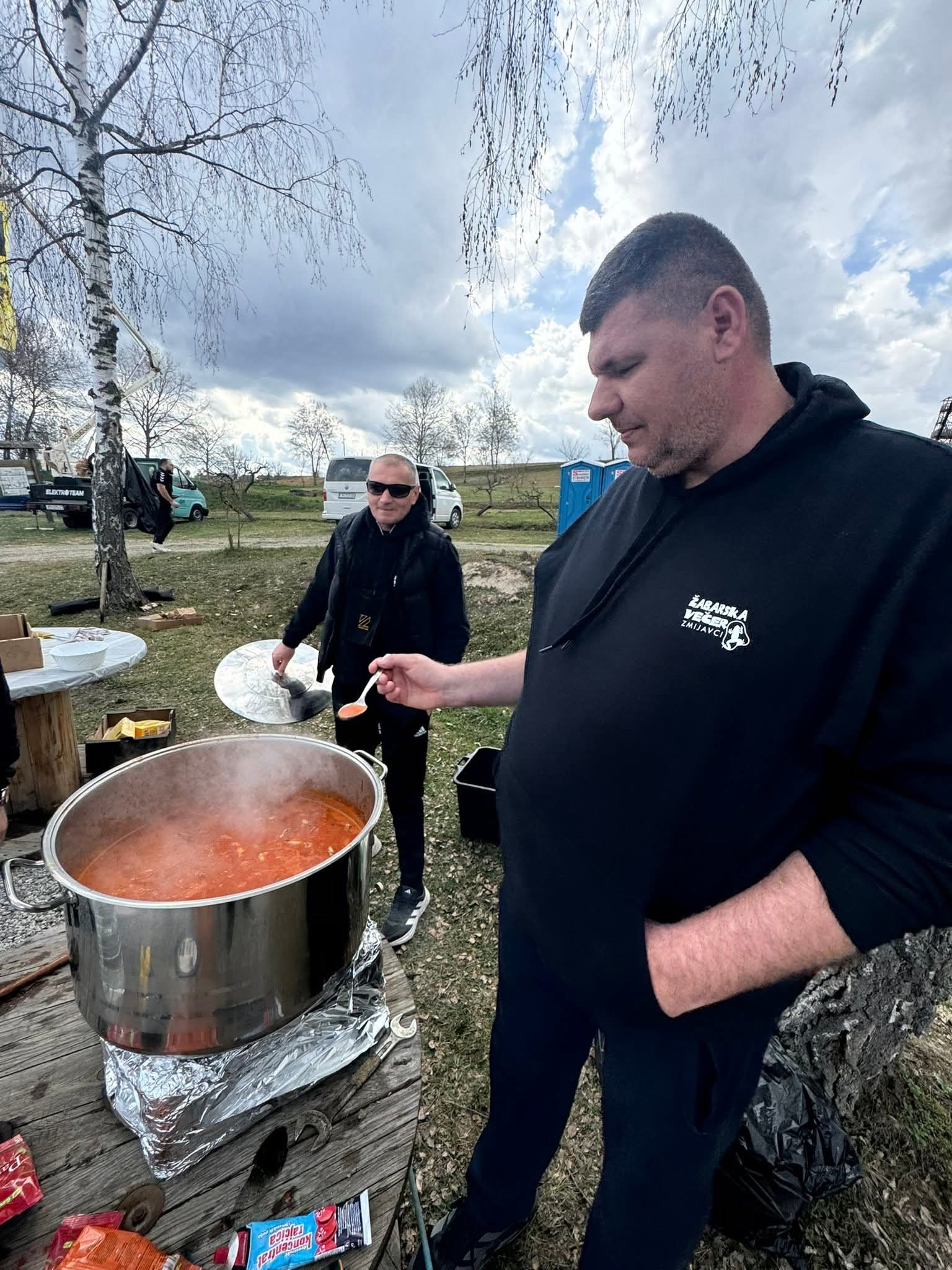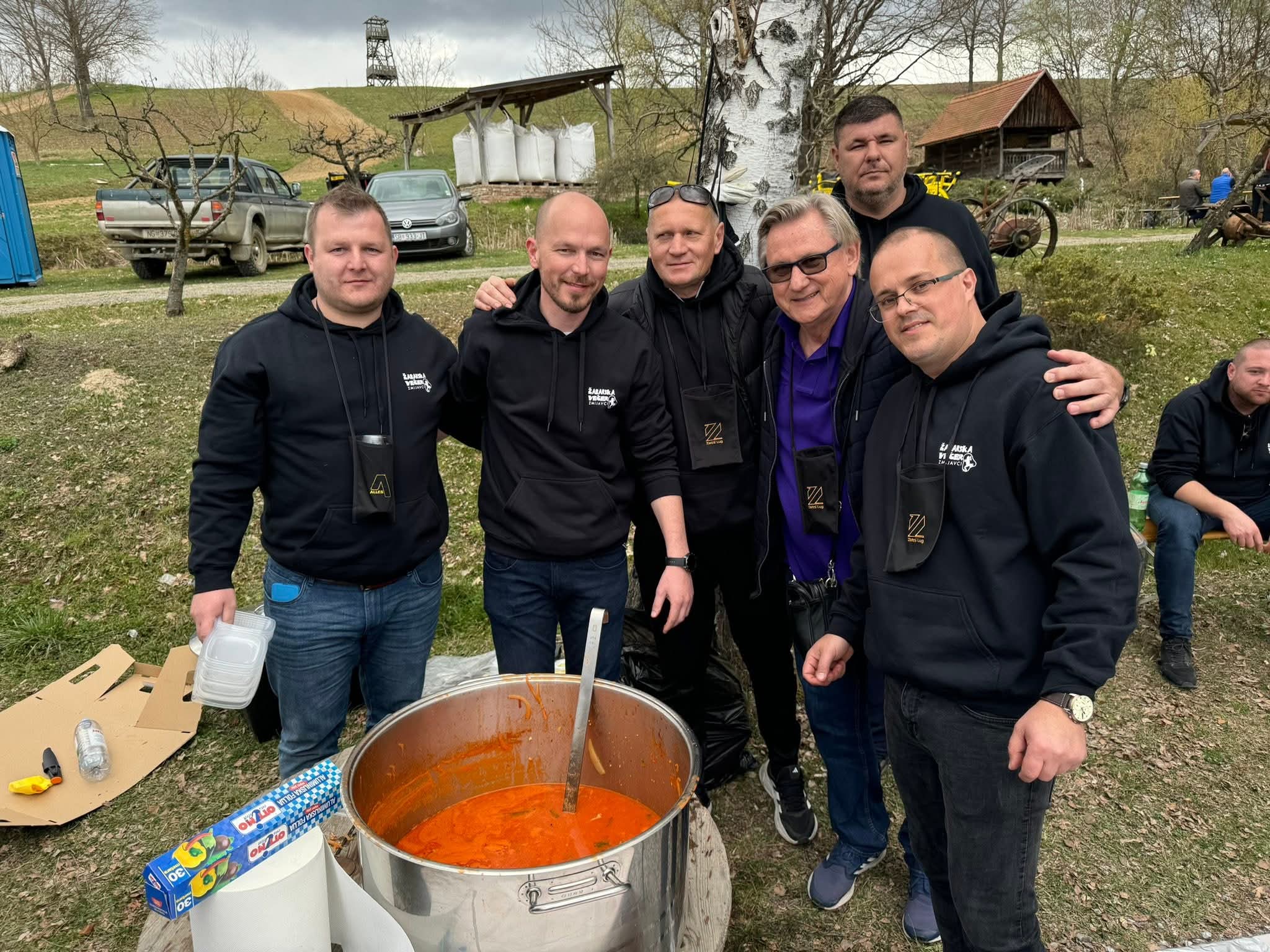 U Požegu je stigla i ekipa iz udruge Žabarska večer predvođena predsjednikom Mariom Gudeljom, a u posjetu su bili i predsjednik Općinskog vijeća Općina Zmijavci Stjepan Gudelj te poznati kuhar Neno, koji je i ovaj put bio zadužen za pripremu tradicionalnog brudeta od žaba, jednog od zaštitnih gastronomskih znakova Zmijavaca.