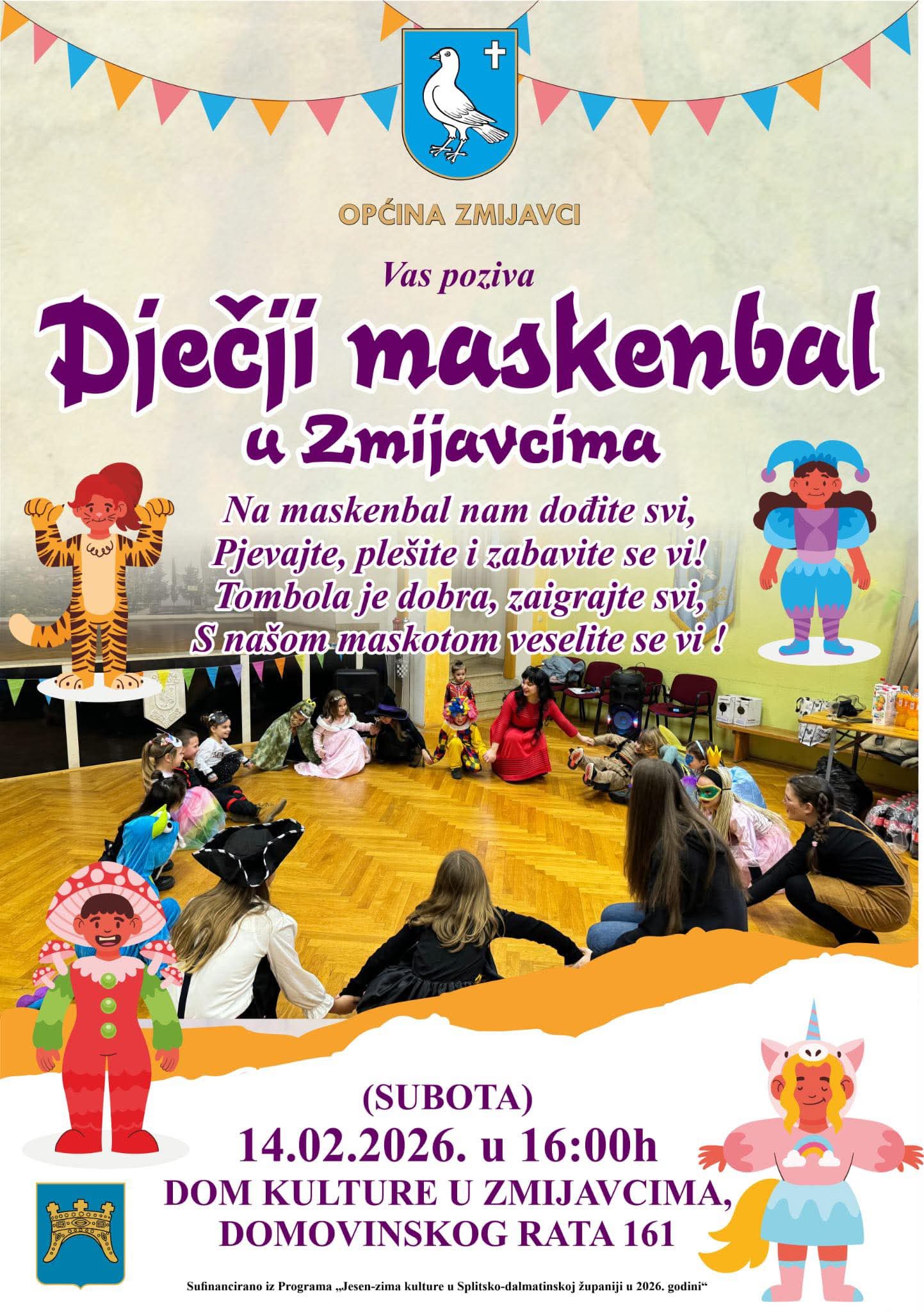 U Zmijavcima će se u subotu, 14. veljače, održati dječji maskenbal kojim započinje novi ciklus programa „Jesen–zima kulture u Zmijavcima“, a namijenjen je najmlađima i njihovim roditeljima.